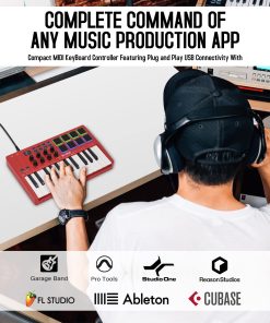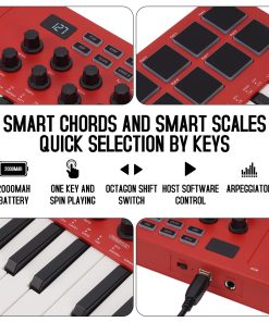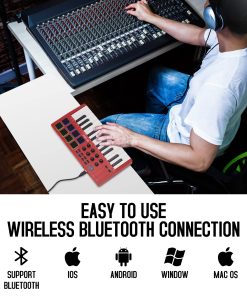 Controlador de Teclado MIDI USB M-WAVE de 25 Teclas con Bluetooth. Es muy compacto y portátil, puedes conectarlo de forma inalámbrica a tu dispositivo con Bluetooth, la batería incorporada de 2,000 mAh puede funcionar durante aproximadamente 16 horas, puedes llevar fácilmente este teclado MIDI ultra portátil en casi cualquier bolso y llevarlo contigo al estudio, café u hotel para componer música.