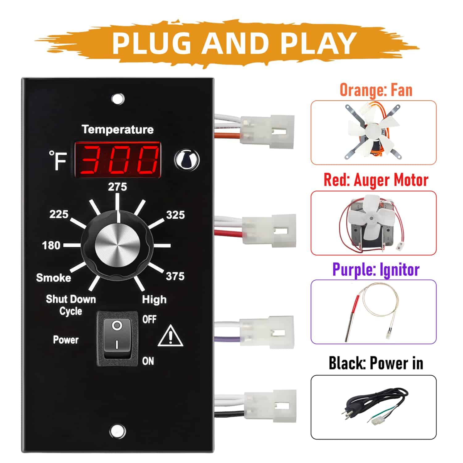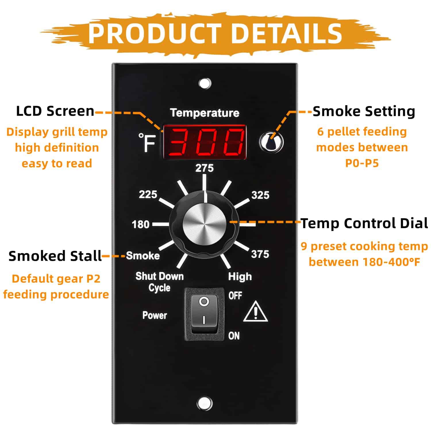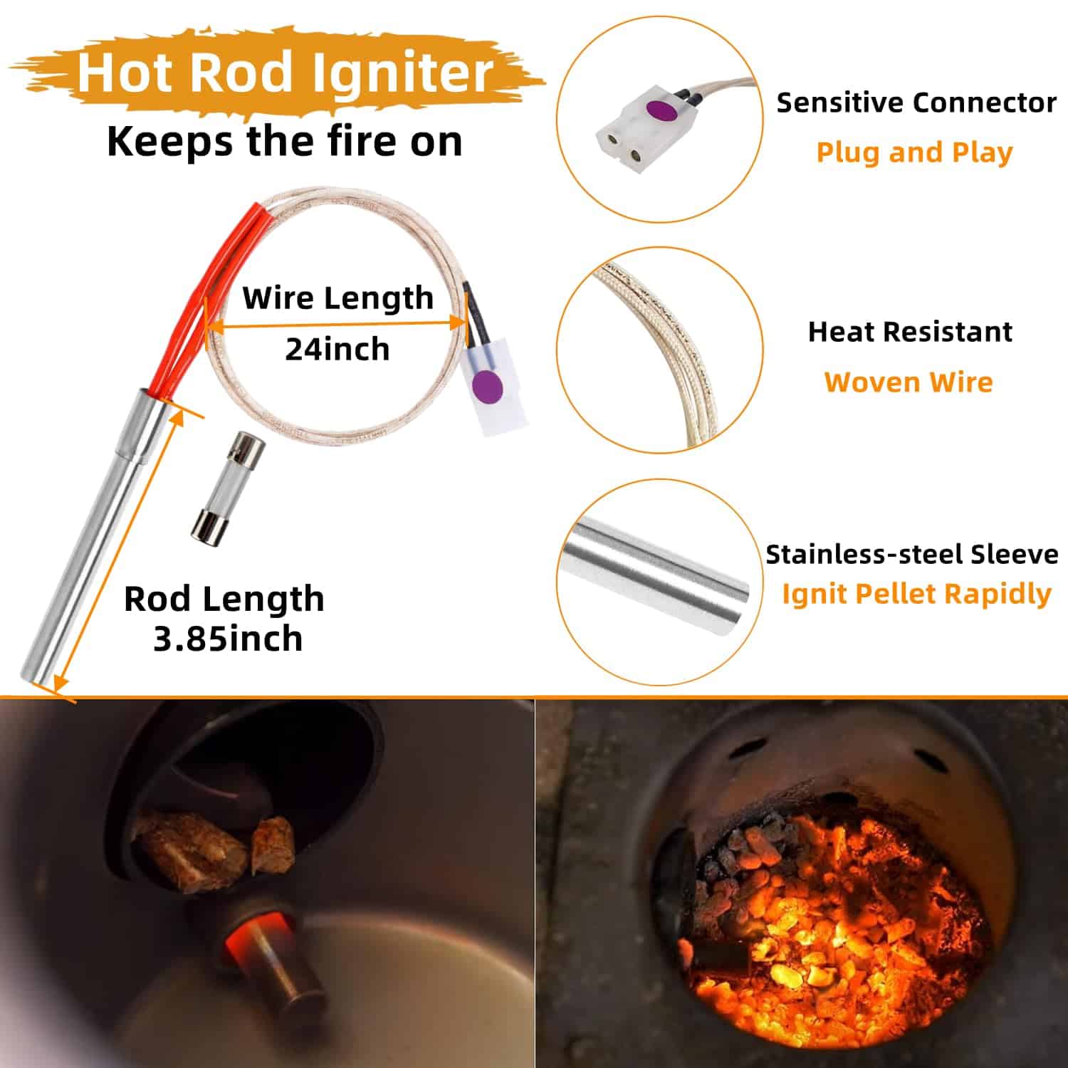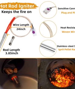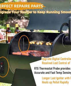 Si quieres mejorar tu Traeger, nuestro kit de piezas de repuesto para Traeger es la mejor opción. Incluye tablero de control digital de élite BAC236, sonda de sensor RTD de 7″ y encendedor de varilla caliente. Tablero de control digital de élite BAC236 de reemplazo, compatible con parrillas Traeger Pro 20, 22 y 34, Texas Elite 34, Lil Tex 22, Junior, Tailgater, Ridgeland, Heartland, Mesa 22, Century 22, Silverton (2019) y Bronson. Resuelve el problema de control de temperatura que experimentaste con el controlador original. 9 configuraciones de temperatura de cocción, cambia y ajusta de 150 F a 400 F, control de temperatura detallado en incrementos de 25 F. En configuración de humo, tienes acceso a 6 modos diferentes de alimentación de pellets (P0-P5). Mantiene mejor la temperatura que el original. Solo necesitas quitar la placa de control original, preparar un kit de piezas de repuesto del controlador para traeger, luego emparejar los colores de los cables en cada enchufe, un cable naranja conecta el ventilador, un cable rojo conecta el motor sinfín, un cable morado conecta el ignitor y un cable negro conecta la alimentación. Así que la instalación completa es conectar y listo, solo emparejando colores. Nuestra sonda RTG de reemplazo del termostato está hecha de acero inoxidable de grado alimenticio para monitorear la temperatura de la parrilla ahumadora. El diseño de bucle proporciona una detección precisa y rápida de la temperatura y te alerta sobre cambios de temperatura en segundos. El encendedor de varilla caliente de 200 vatios/120 voltios y 21″ de cable está envuelto por un protector de acero inoxidable que se calienta para una ignición rápida de pellets y dura más tiempo. Viene con un fusible para evitar la activación del GFCI. Satisfacción del cliente garantizada al 100%, no importa si tienes alguna pregunta cuando recibas las piezas de repuesto para parrilla de pellets Traeger, puedes contactarnos directamente y te daremos una respuesta satisfactoria en 24 horas y una solución satisfactoria.