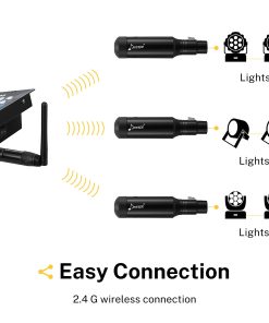 El controlador inalámbrico DMX512 de Donner es ideal para el control de iluminación escénica. Un transmisor puede controlar varios receptores. Con indicadores LED tricolores, el DMX512 inalámbrico puede ser utilizado en todas las lámparas DMX. Sin cables, es la manera perfecta de deshacerse de los problemas de enredar los cables. (Nota: Solo es compatible con dispositivos marcados con DMX512).