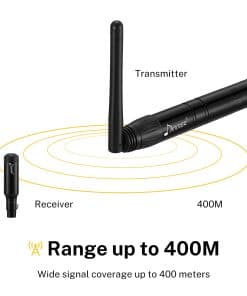 Especificaciones: 1. Transmisor/receptor inalámbrico DMX512 2.4G 2. 126 canales de frecuencia de salto automáticamente, alta capacidad anti-interferencias, para garantizar la confiabilidad del trabajo 3. 7 grupos de códigos de identificación configurables, los usuarios pueden utilizar 7 grupos de redes inalámbricas individuales sin interferencias entre sí en el mismo lugar (Indicadores LED tricolores) 5. Voltaje de entrada: 5VDC 500mA MIN 6. Distancia de comunicación: 400M (distancia visible) 7. Sección de frecuencia de trabajo: 2.4G ISM, 126 canales, sección de frecuencia 8. Tasa máxima de potencia de transmisión: 20dBm 9. Sensibilidad del receptor: -94dBm 10. CPU: Núcleo ARM de 32 bits 11. Modulación: GFSK 12. Interfaz de señal DMX: RS485 13. Temperatura de funcionamiento: -40 ~ 85 C 14. Temperatura de almacenamiento: -65 ~ 150 C 15. Humedad relativa ambiente: 5 al 95% (sin condensación) 16. Desencadenador de reinicio automático: Temporizador de vigilancia incorporado (WDT) Nota: Al usarlo, por favor levante y baje la antena, no mueva la antena bruscamente. Paquete incluido: 1 x Transmisor inalámbrico DMX512 (Enchufe de EE. UU.) 7 x Receptor inalámbrico DMX512 (Enchufe de EE. UU.) 8 x Adaptadores de corriente