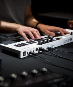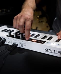 El KeyStep 37 combina un teclado flexible de 37 teclas con secuenciación intuitiva, generación instantánea de acordes y controles creativos de MIDI en tiempo real que te permiten descubrir e interactuar con la música como nunca antes. Teclado Slimkey de 37 teclas con velocidad, aftertouch e indicadores LED RGB en tiempo real para una actuación cómoda y receptiva. Modo Chord supercargado: genera secuencias de acordes instantáneas que responden a tu velocidad, con 12 tipos de acordes y un control de rasgueo articulado similar al de un instrumento. Conectividad versátil: conecta tu computadora, tus sintetizadores MIDI de escritorio o tu equipo CV y modular para un control simultáneo sobre hardware y software. Modo Escala: cuantiza el teclado y nunca toques una nota incorrecta. Elige entre 5 escalas, incluida una escala definida por el usuario, para establecer tus términos musicales. Controles MIDI CC asignables: interactúa con tu hardware y software con 16 parámetros MIDI CC asignables en 4 bancos conmutables. Música interactiva: el modo de acordes único y mejorado de KeyStep 37 toma tus melodías de una sola nota y tus ideas incompletas y las transforma en escalones musicales. Elige entre varias variantes, efectos de rasgueo similares a los de un instrumento y configuraciones de velocidad, y haz que tu música cante. Ableton Live Lite incluido: se incluye una copia gratuita de Ableton Live Lite, un conjunto de creación musical accesible para tu Mac o PC. Registra KeyStep 37 para tu descarga gratuita y ponte creativo directamente desde la caja: deja que la música fluya libremente.