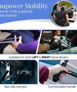 1. ¡Color Aluminio LA MARCA ESTADOUNIDENSE PROBADA: QuicStick ha estado creando soluciones innovadoras de movilidad para la conducción durante más de 13 años, incluido el control manual portátil original y el control manual de empuje y tracción. Somos una empresa familiar propietaria de silla de ruedas con sede en San Diego, California, EE. UU., dedicada a ofrecer los controles manuales de mayor calidad y brindar un servicio al cliente excepcional (disponible por teléfono y correo electrónico). 2. TOTALMENTE ENSAMBLADO Y FÁCIL DE INSTALAR: QuicStick es la mejor alternativa a los controles manuales permanentes, viene totalmente ensamblado perfecto para clientes con una discapacidad permanente o temporal. QuicStick también se puede instalar en prácticamente cualquier vehículo sin herramientas y en cuestión de minutos. (Los vehículos extranjeros híbridos del 2006 y posteriores, como Tacoma / Prius y Sienna, pueden requerir una herramienta especial (por favor envíenos un mensaje para aclarar, consulte con el fabricante). 3. TOTALMENTE AJUSTABLE Y FÁCIL DE USAR: QuicStick se puede ajustar prácticamente a cualquier conductor y vehículo, ajustar la altura correcta se puede hacer en cuestión de segundos gracias a su hardware de conexión rápida y su diseño superior. QuicStick tiene casi ninguna curva de aprendizaje, ya que está diseñado para funcionar con un movimiento natural de la mano y un esfuerzo mínimo. Es ideal para viajes, viajes largos por carretera y desplazamientos diarios. 4. FÁCIL DE TRANSPORTAR, LIGERO Y DURADERO: QuicStick es fácil de transportar, ya que cabe en cualquier equipaje de mano. QuicStick está hecho de 3 libras de construcción de aluminio de primera calidad, lo que lo convierte en el más duradero de su clase. (los controles se pueden operar individualmente). 5. VALOR DEMOSTRADO: QuicStick es la marca más probada y popular que ofrece controles manuales portátiles de alta calidad y duraderos en el mercado. Los controles manuales portátiles de QuicStick son la mejor alternativa a los controles manuales permanentes, ya que son ideales para personas que se están recuperando de una fractura de pie, tobillo roto, pierna rota, cirugía de pie, cirugía de rodilla o cirugía de tobillo y personas con amputación, lesión de médula espinal, espina bífida y mucho más.