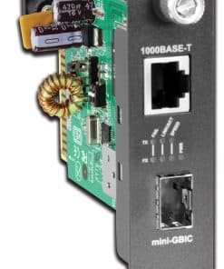 El conversor de medios de fibra 100/1000BASE-T a SFP de TRENDnet, modelo TFC-1000MGA, es un conversor fiable de fibra a Ethernet Plug-and-Play en un formato compacto. Este versátil conversor de fibra admite tanto los estándares de fibra de Modo Múltiple (SX) como de Modo único (LX) para distancias de transmisión de hasta 80 kilómetros (50 millas). La ranura Mini-GBIC y el puerto Ethernet Gigabit negocian automáticamente entre velocidades de transmisión de 100 y 1000Mbps. Los LED de diagnóstico en el frente del conversor indican el estado del dispositivo. Controle la Auto-Negociación (Forzado/Auto-Negociación) y la Recuperación de Pérdida de Enlace (Habilitar/Deshabilitar) con un interruptor interno. Este resistente conversor de metal puede instalarse como una unidad independiente y es compatible con el sistema de chasis de conversor de fibra expandible de 16 bahías de TRENDnet, modelo TFC-1600. Cumple con los estándares IEEE 802.3ab 1000Base-T e IEEE 802.3z 1000Base-SX/LX. 1 x Puerto RJ-45 10/100/1000Base-T 1 x Ranura Mini-GBIC 100Base-FX/1000Base-SX/LX Proporciona interruptor Dip para configurar: Fibra (Forzado/Auto-Negociación), LLR (Habilitar/Deshabilitar) Soporte LLCF (Habilitar/Deshabilitar), paso a través de enlace perdido Monitorice y configure el modo dúplex de Ethernet o Fibra, LLR, e información de enlace recibido a través del módulo de administración TFC-1600MM y chasis TFC-1600 Indicadores LED de estado para Energía, Enlace/Actividad y Falla Montable en pared Compatible con el sistema de chasis de conversor de fibra de 16 bahías de TRENDnet, modelo TFC-1600 Garantía de por vida del fabricante TRENDnet. CONTENIDO DEL PAQUETE: Guía de instalación rápida multilingüe Adaptador de corriente (5V, 1A)