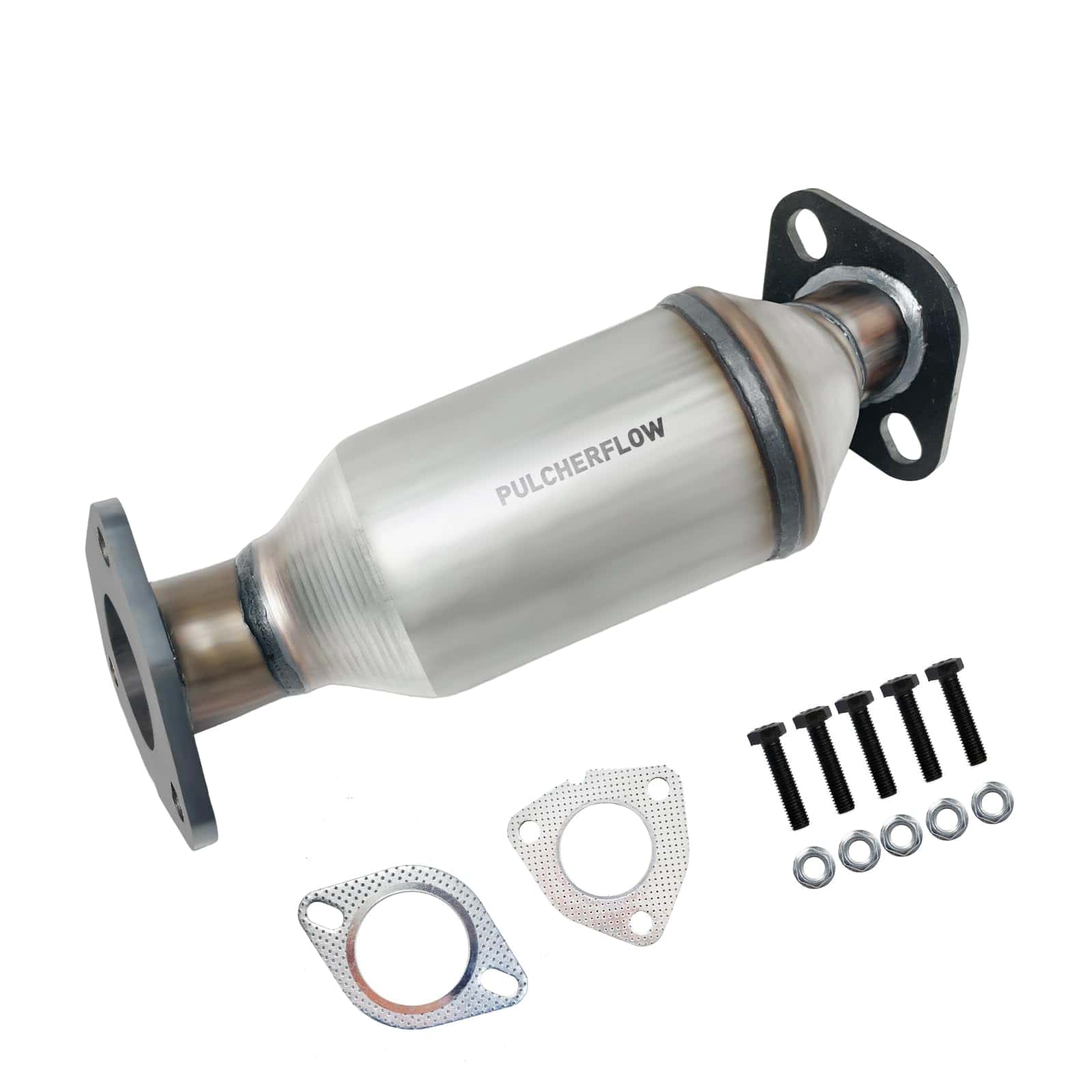 Convertidor Catalítico PULCHERFLOW de Alto Rendimiento Mejor Flujo, Mejor Rendimiento (Cumple con las normas de la EPA). Material de sustrato premium y un recubrimiento de alta tecnología garantizan una capacidad excepcional de almacenamiento de oxígeno, mientras que la experiencia en OE ofrece piezas diseñadas específicamente para aplicaciones. Hecho de material de acero inoxidable de alta calidad, resistente, duradero, resistente a altas temperaturas y duradero material de catalizador.
