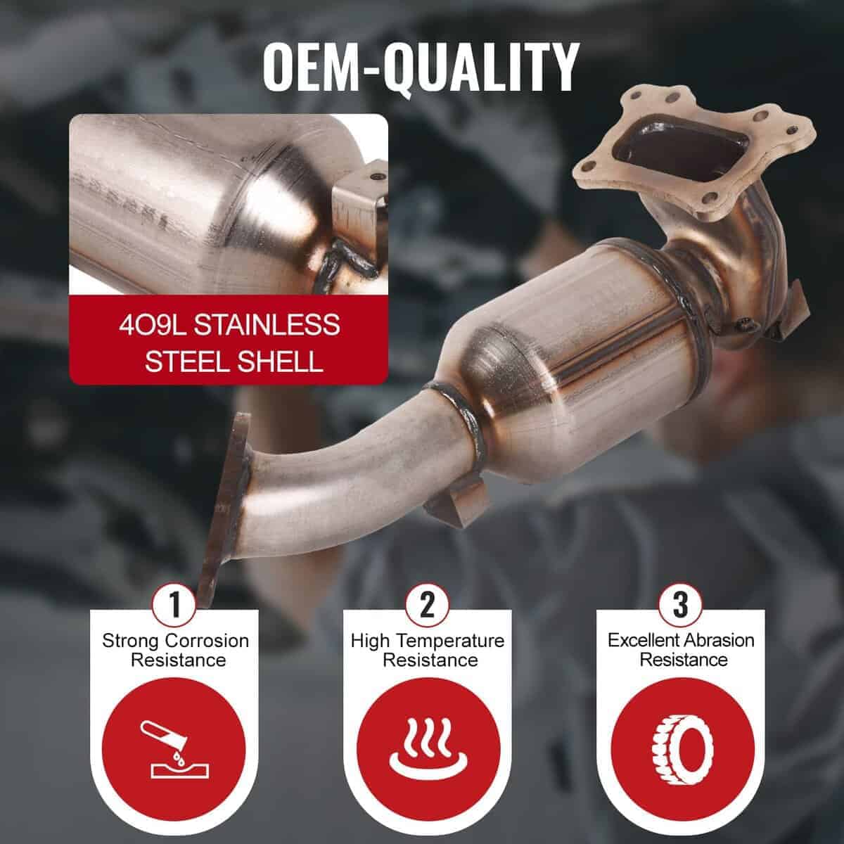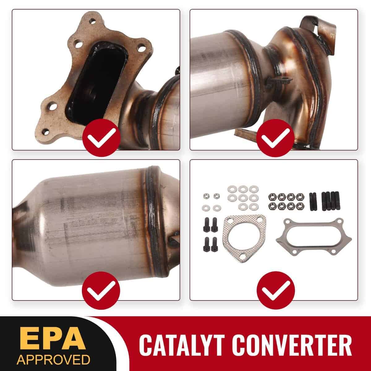 4. Por favor, verifique la etiqueta de información de control de emisiones del vehículo y consulte las regulaciones del convertidor de emisiones de su estado para seleccionar el convertidor catalítico adecuado.