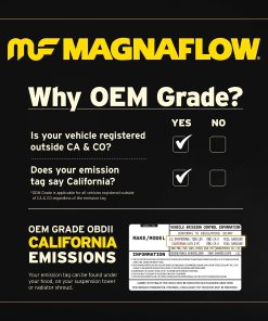 1. CUMPLE CON LA EPA: Este convertidor catalítico está diseñado para cumplir o superar los requisitos de emisiones OBDII de la EPA federal en cumplimiento con los estándares legales para vehículos registrados federalmente con sistemas de emisiones de California o la EPA federal. NO es para uso en California, Colorado, Nueva York, Maine. 2. INSTALACIÓN UNIVERSAL: Los convertidores catalíticos universales le permiten colocarlos en la ubicación y orientación exactas requeridas para su vehículo. Se recomienda la instalación profesional. 3. CONSTRUCCIÓN DE ACERO INOXIDABLE: La construcción duradera de acero inoxidable y los puertos de O2 integrados tipo OEM garantizan un rendimiento y confiabilidad óptimos del convertidor catalítico. El diseño tipo bisagra presenta una soldadura de junta continua que garantiza una aislamiento térmico superior. 4. GRADO OEM: Construido según los estándares de Grado OEM, igualando el rendimiento y la calidad del convertidor catalítico original de su vehículo. 5. GARANTÍA LIMITADA DE 5 AÑOS / 50,000 MILLAS: La propiedad sin preocupaciones es posible gracias a la garantía de construcción de 5 años/50,000 millas y la garantía de emisiones de 25,000 millas incluida con este convertidor catalítico MagnaFlow