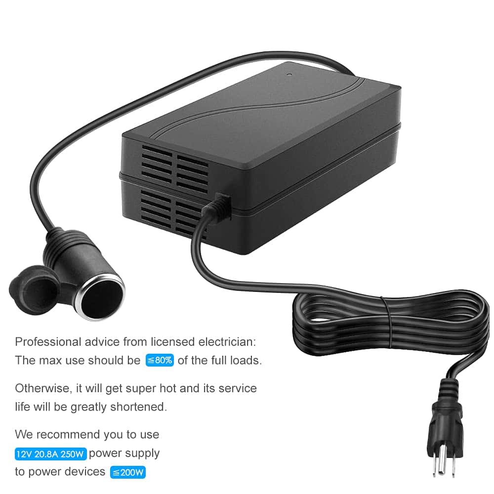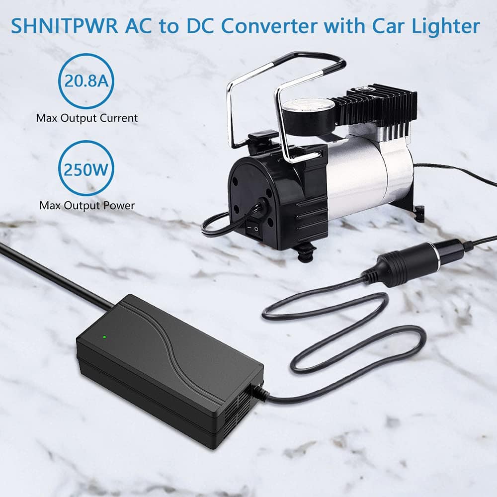El convertidor de corriente de CA a CC SHNITPWR es una solución eficaz para suministrar energía a sus dispositivos automotrices. Con una entrada de CA de 100V-240V y una salida de CC de 12V con un máximo de 20.8A y 250W, este adaptador es capaz de alimentar una variedad de dispositivos con eficiencia y seguridad. Además, cuenta con protecciones automáticas contra sobrevoltaje, sobrecorriente, sobrecalentamiento y cortocircuito, lo que garantiza una operación segura en todo momento. El convertidor también incluye un ventilador de enfriamiento inteligente que se activa automáticamente cuando la corriente alcanza más de 8 amperios, asegurando que el dispositivo mantenga una temperatura segura de funcionamiento y prolongue su vida útil. Este adaptador de corriente es ideal para dispositivos automotrices como refrigeradores para automóviles, infladores de neumáticos, aspiradoras para automóviles, cojines de masaje para automóviles, calentadores de agua portátiles para automóviles, grabadoras de video DVR para automóviles, transmisores FM Bluetooth para automóviles, entre otros. Este producto no es un cargador y no debe utilizarse para cargar dispositivos electrónicos con baterías, como computadoras portátiles, ya que podría dañar el dispositivo. Con un servicio postventa receptivo y una garantía de intercambio de 18 meses, SHNITPWR se compromete a ofrecer productos de alta calidad y seguros para sus necesidades de energía automotriz.