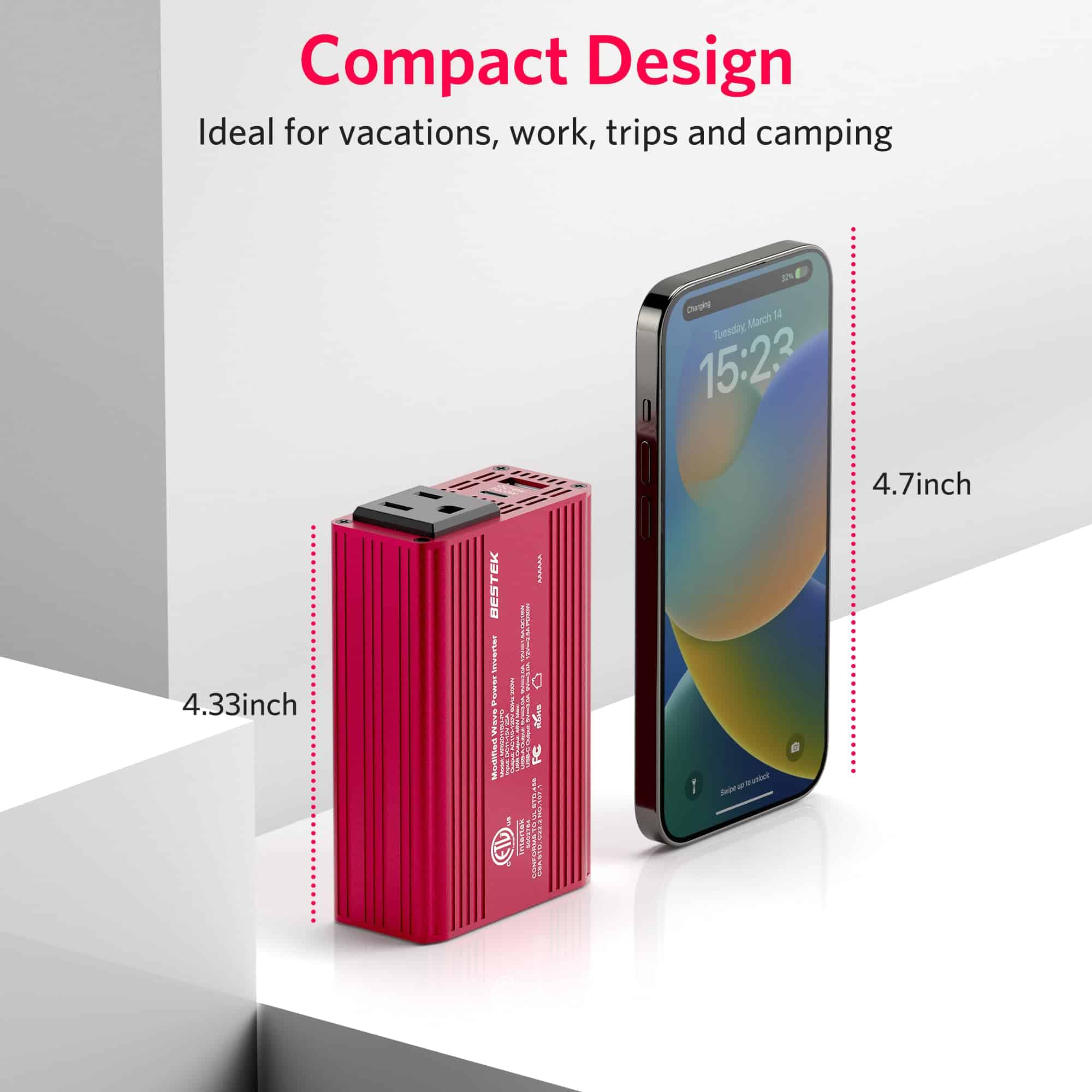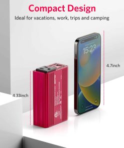 4. PORTÁTIL CON DISEÑO COMPACTO: El convertidor ligero ahorra espacio y es fácil de almacenar, ideal para usar en largos viajes en coche, vacaciones familiares y acampadas. Ideal para cargar luces de cuerda, portátiles, tabletas, extractores de leche, máquinas CPAP, cámaras GoPro, nebulizadores, consolas de juegos, kindle, televisores, reproductores de DVD, luces, iPhones, iPads, aspiradoras para coche, lámparas de mesa LED, mini neveras y otros dispositivos electrónicos.