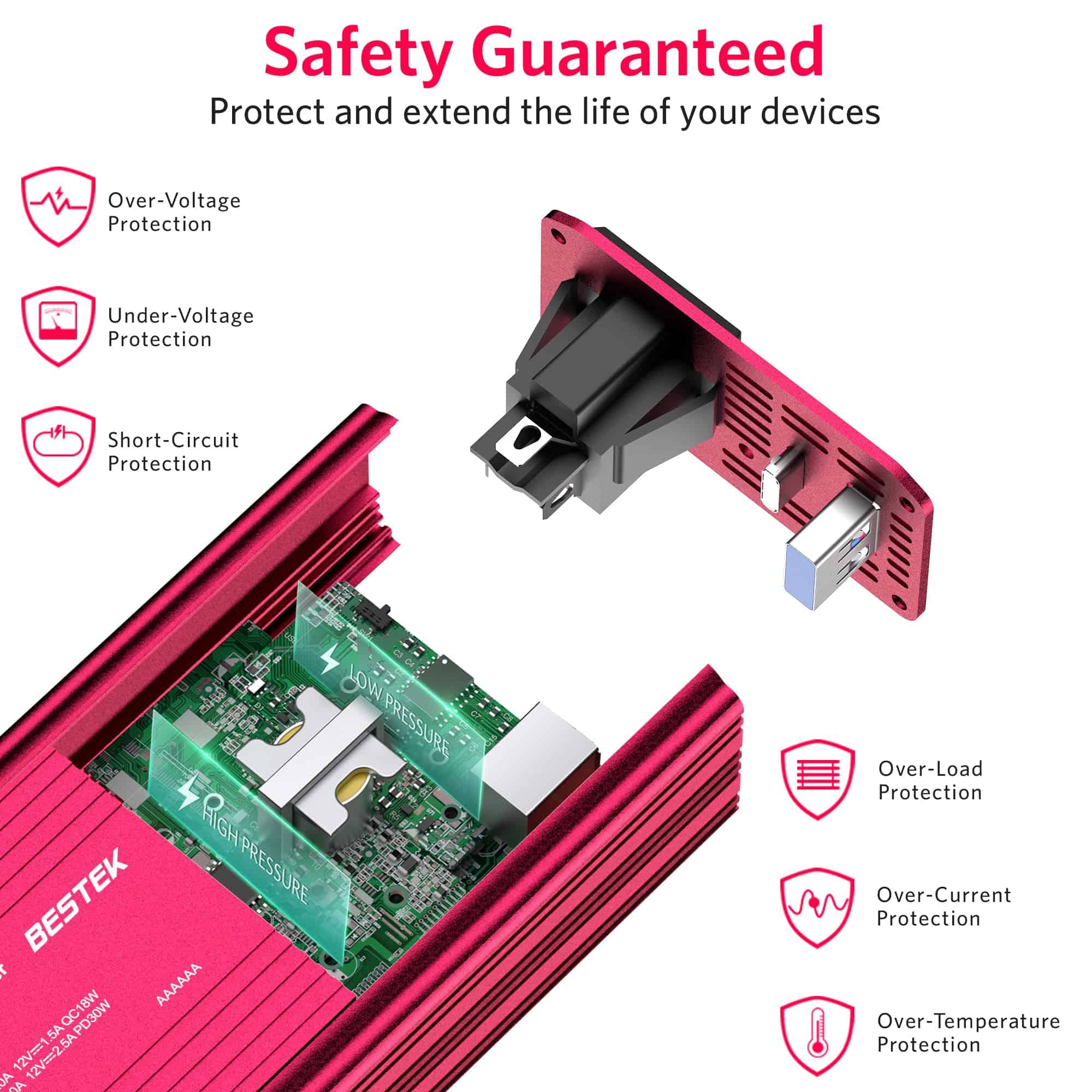 6. GARANTÍA DE CALIDAD CONFIABLE: Producto certificado por ETL garantiza seguridad y calidad. Si tiene alguna pregunta o insatisfacción con su compra, soporte técnico y de atención al cliente amigable las 24 horas x 7 días, BESTEK garantiza un reembolso dentro de 180 días y una garantía de reemplazo del producto de 18 meses.
