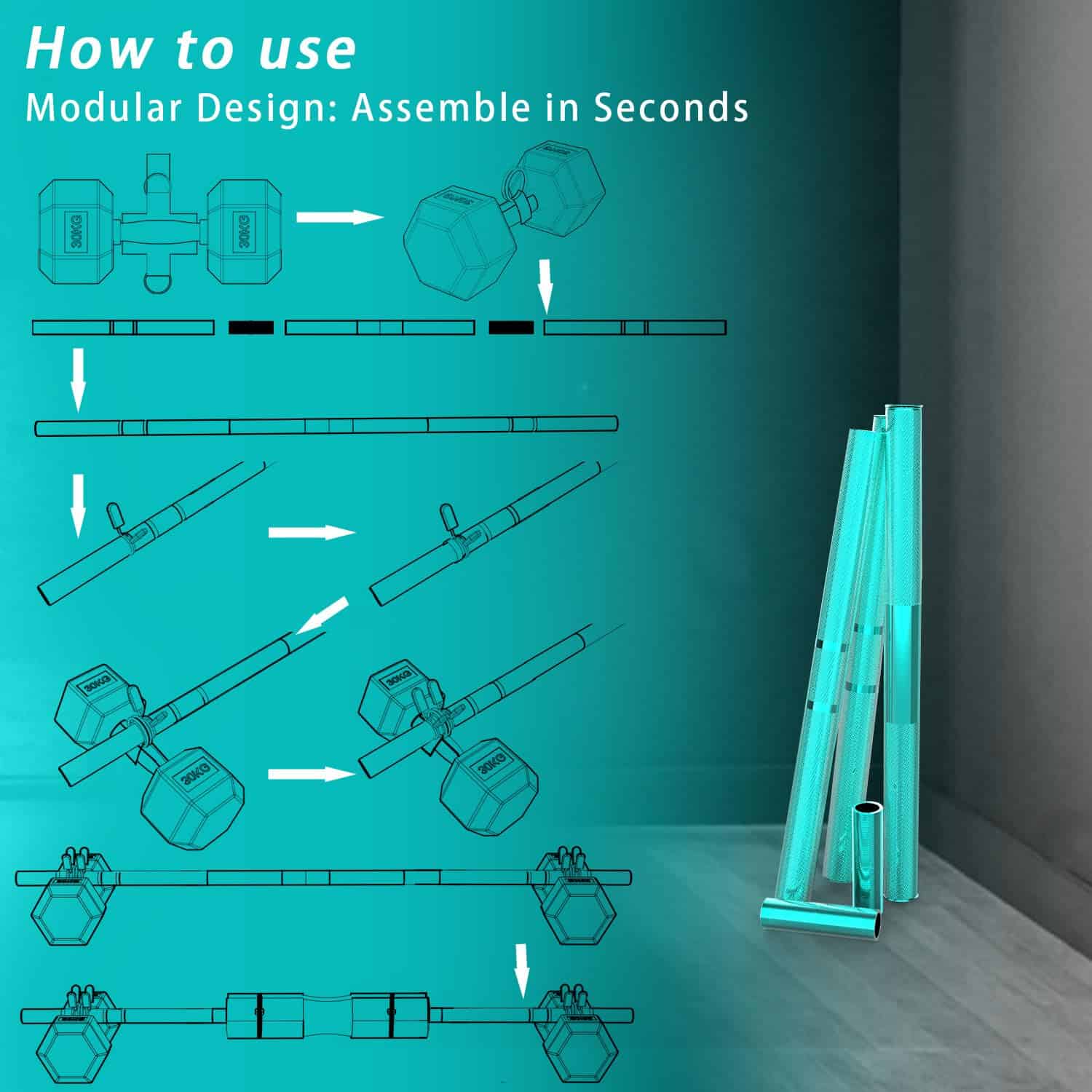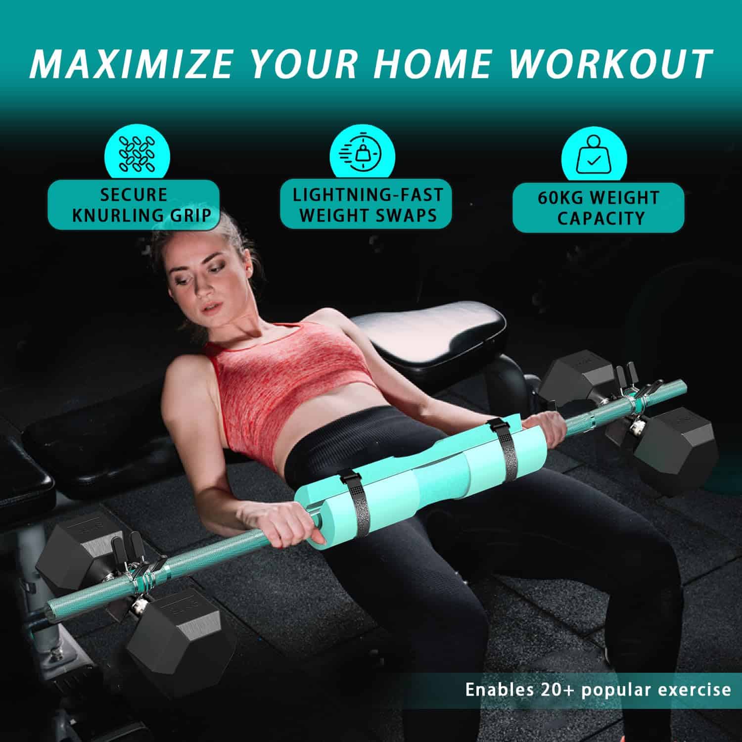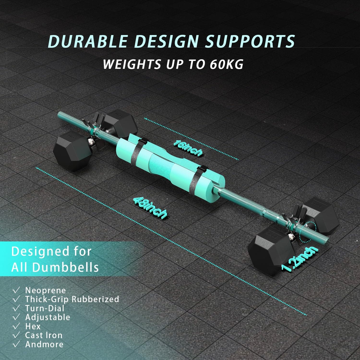¡Transforma tu rutina de ejercicio con nuestro Convertidor de Mancuerna a Barra de 48 pulgadas! Fabricado con una aleación de aluminio resistente, soporta hasta 132 lbs e incluye una almohadilla para barra cómoda para mayor protección. Con sujeciones seguras y un diseño que ahorra espacio, este versátil convertidor es perfecto para gimnasios en casa, permitiéndote realizar peso muerto, sentadillas y thrust de cadera con facilidad y confianza. Optimiza tu entrenamiento de fuerza hoy!