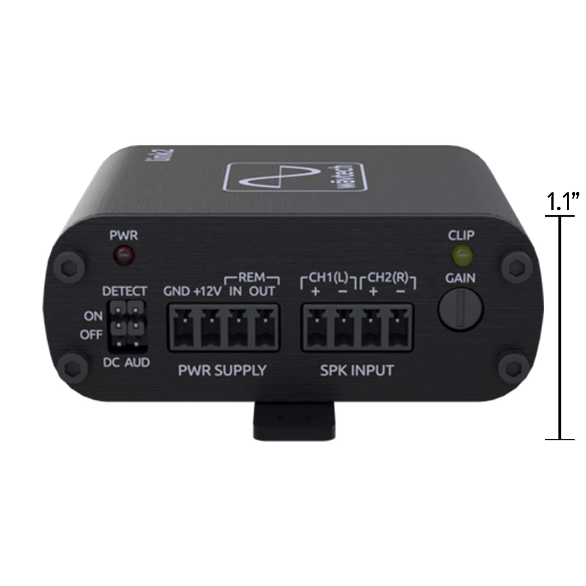 Obtener una señal fuerte y limpia de un estéreo de fábrica. Sus procesadores y amplificadores de posventa necesitan señales de entrada de nivel de línea limpias y robustas, especialmente al obtenerlas de las salidas de altavoces de un radio de fábrica. El convertidor de salida de línea link2 de Wavtech puede producir hasta 10 voltios de salida, más que suficiente para que su equipo de posventa funcione. También funciona con amplificadores de fábrica. Esas entradas de nivel de altavoz pueden soportar hasta 40 voltios, equivalente a 400 vatios, por lo que puede utilizar uno en un sistema premium con un amplificador de fábrica. De esta manera, conserva todas las opciones de audio y avisos de fábrica de su vehículo. El control de ganancia y la luz de clip del link2 le ayudan a mantener el nivel de señal bajo control y libre de distorsión.
