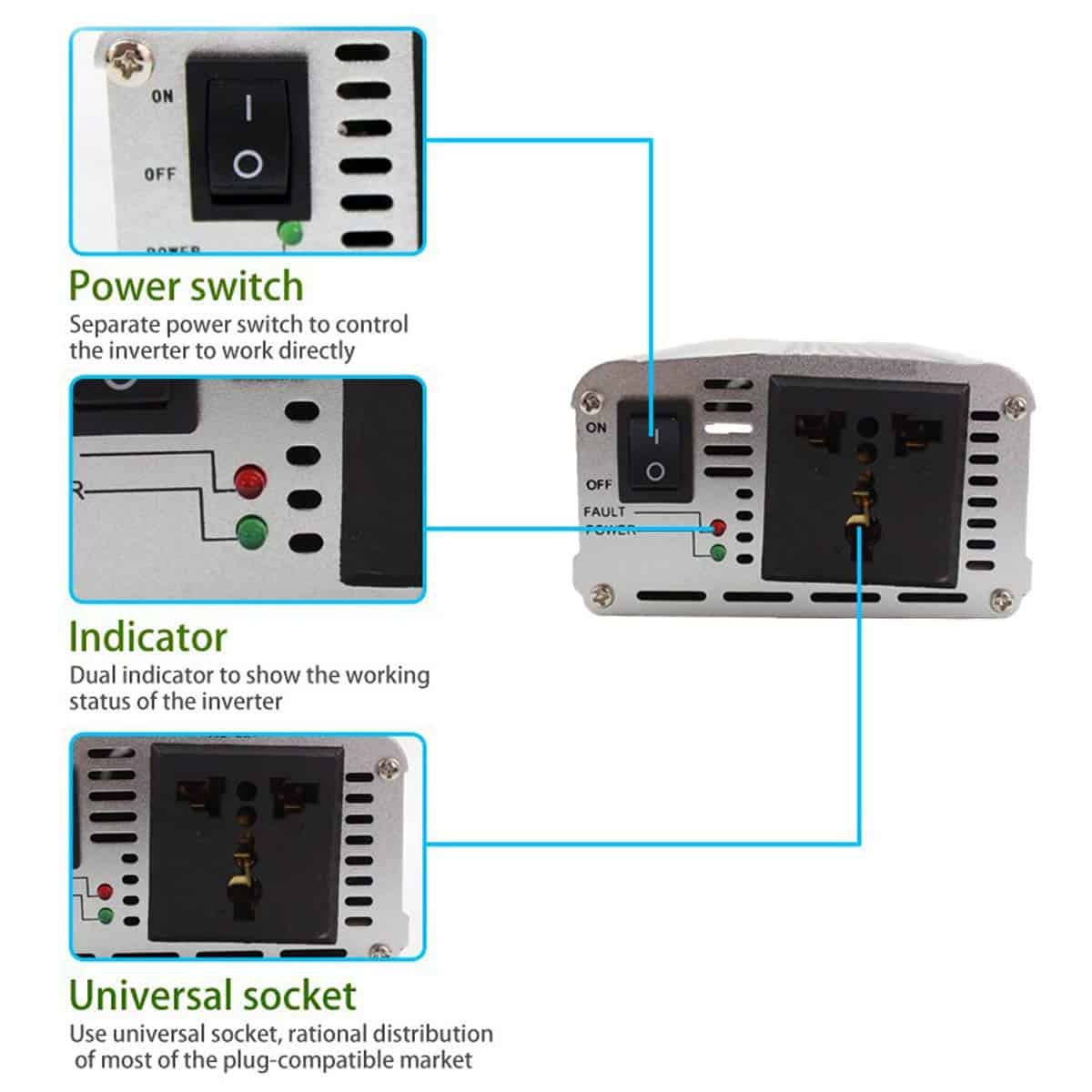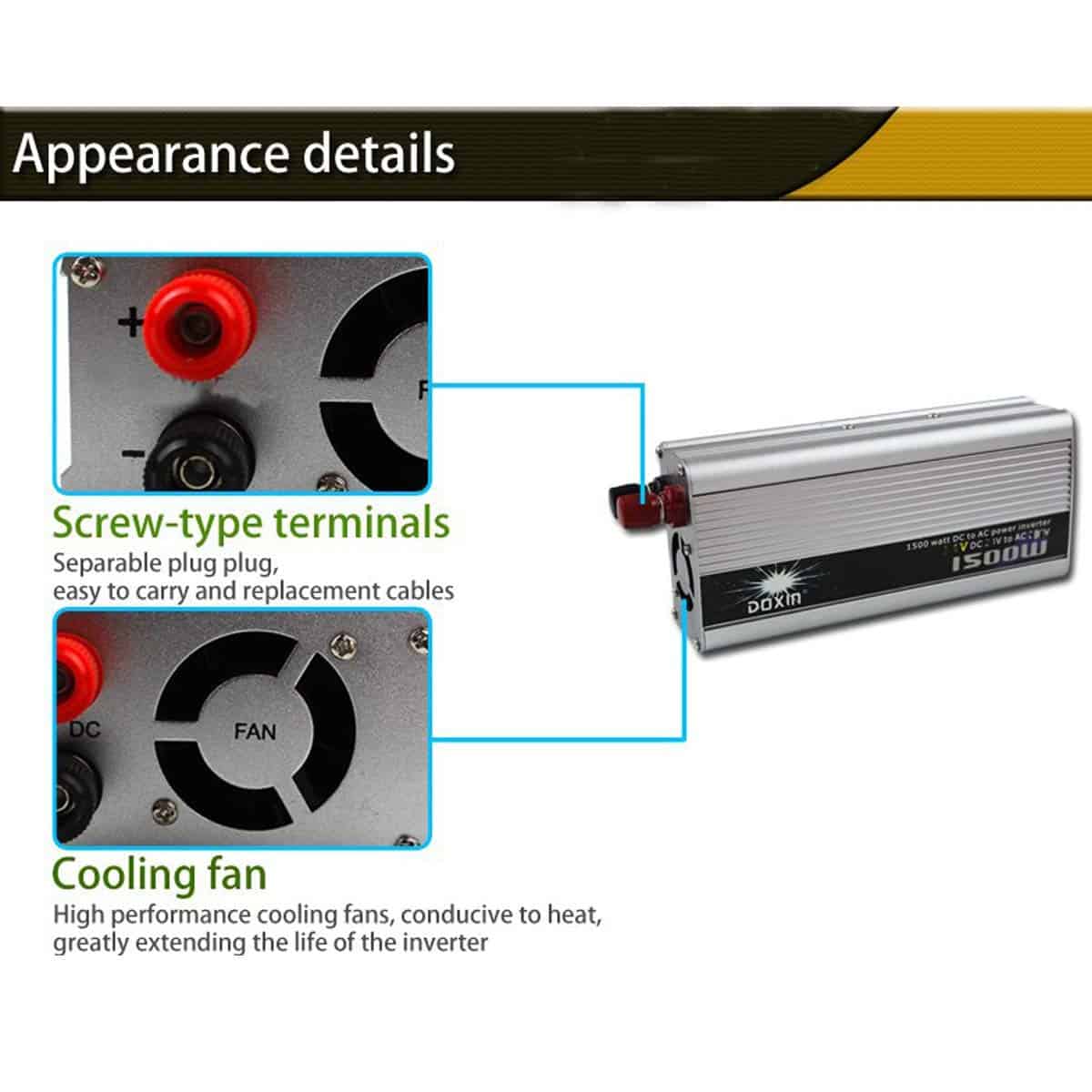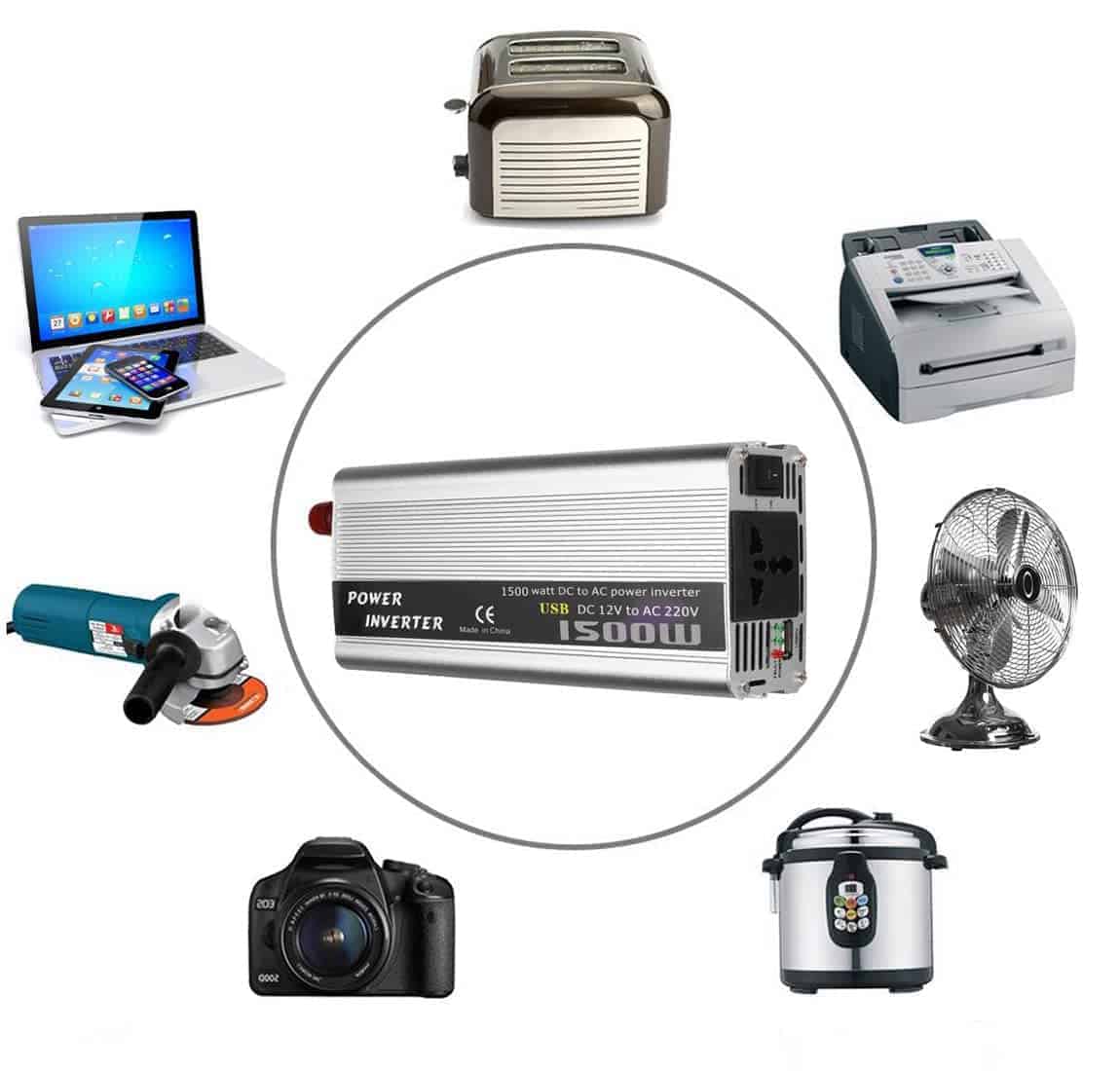 Convertidor de corriente para auto de 1500W, convierte DC 12V a AC 110V.