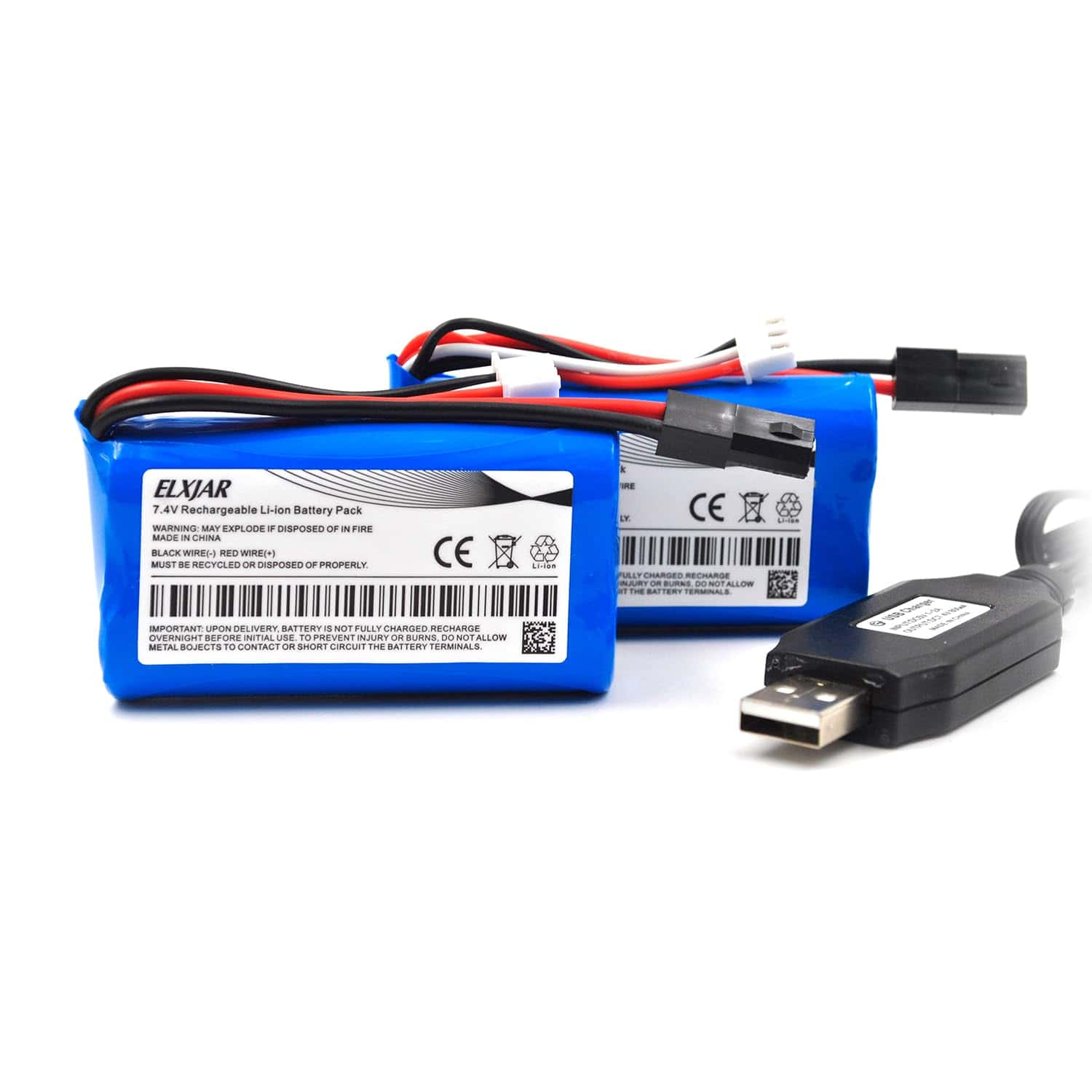 2 x Cable de carga USB para batería de león o Lipo de 7.4V 2S.