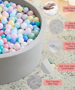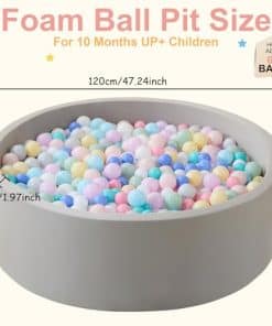 Corralito de pelotas para niños y bebés de 10 meses en adelante. Este corralito cilíndrico de 47.2» de diámetro y 15.7» de altura proporciona un lugar seguro y divertido para que los niños jueguen con pelotas. Hecho de espuma suave y duradera, este corralito es perfecto para jugar tanto en interiores como en exteriores. El regalo ideal para los más pequeños.