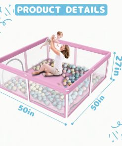 Corralito Plegable para Bebés TOREVSIOR cuenta con un innovador diseño plegable que facilita su montaje y desmontaje, se completa en segundos y se puede guardar fácilmente en una bolsa para ahorrar tiempo y espacio. Hecho de tela de Oxford 300D, nuestro corralito para bebés es más grueso, no tóxico y libre de BPA, más seguro para tu bebé. La base antideslizante y el tubo de acero engrosado hacen que la cerca para bebés sea más estable, proporcionando un centro de actividad más seguro para el bebé. Nuestro corralito portátil ha pasado la estricta certificación CPC, así que puedes usarlo con total tranquilidad. El área de juego de nuestro corralito para bebés y niños pequeños se extiende a 50″x50″x27″, ofreciendo mucho espacio para que el bebé gatee, juegue y lea, dando al bebé espacio para usar su imaginación. Además, nuestro corralito plegable para bebés está envuelto con tela suave, por lo que no hay peligro de pellizcos. Puedes dejar que tu hijo se divierta jugando en este centro. La puerta del corralito para bebés está diseñada con una cremallera externa para evitar que el bebé la abra y trepe. Diseñado con una pared de malla ventilada y transpirable para evitar la sofocación del bebé, también proporciona una buena vista para que tú y tu bebé interactúen en cualquier momento, brindando suficiente seguridad para tu bebé. El corralito portátil puede expandirse hasta los 50 pulgadas y plegarse rápidamente a un tamaño compacto que cabe perfectamente en una bolsa de transporte para un fácil traslado y almacenamiento. Nuestro corralito portátil es ideal para salidas al parque, playa y paseos. TOREVSIOR Corralito Plegable para Bebés de 50″x50″x27″ viene con un tapete grueso y suave. El tapete BPA-free, no tóxico, sin olor garantiza un parque infantil seguro para tu hijo. El tapete que se ajusta a las dimensiones del corralito evita que el bebé se caiga o se golpee mientras está dentro, es lavable a máquina y se puede secar cuando necesite limpieza. Además, habrá 50 bolas de océano en el paquete, lo que permitirá a tu hijo divertirse aún más en su interior.