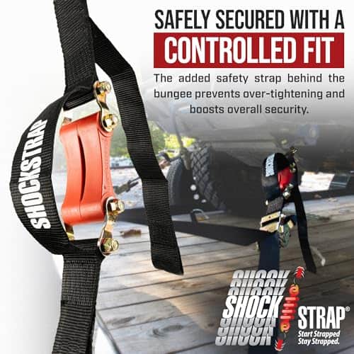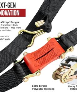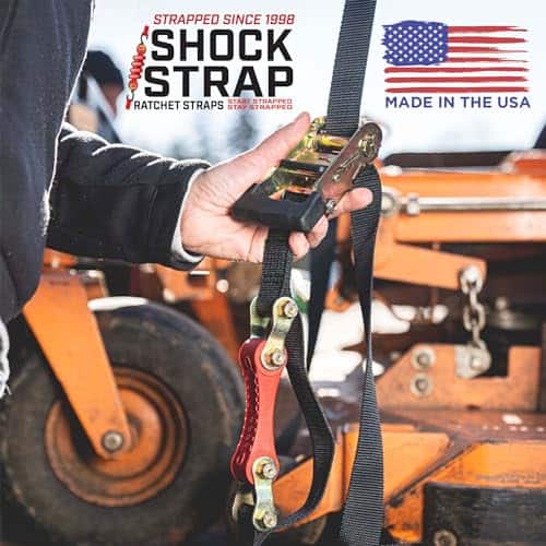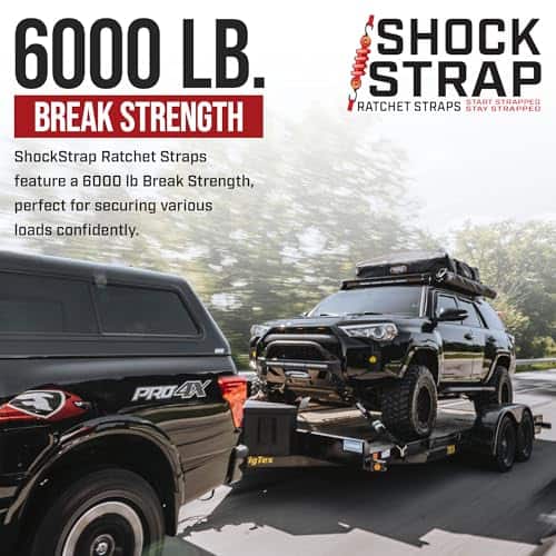 La resistencia a la rotura es de más de 6,000 lb. Construido con un trinquete de grado pesado, cinta de poliéster negro de grado pesado de 2 pulgadas, ganchos de cierre tratados con cromato de zinc y nuestros exclusivos ShockStraps flexibles. Incorporamos una correa de seguridad en un lado del ShockStrap por 2 razones: 1. si ocurriera un accidente catastrófico y el ShockStrap se rompiera, la correa de seguridad mantendrá la correa de amarre firme en su lugar. 2. la correa de seguridad también actúa como un limitador, para que no aprietes demasiado y estreses todo lo que estás tratando de asegurar. Nuestra cinta de poliéster negro de grado pesado de 2 pulgadas y la correa de seguridad del trinquete tienen un límite de carga de trabajo de 2,000 lb. El trinquete tiene una liberación externa para facilitar el uso incluso con guantes puestos. Está atornillado para que puedas reemplazarlo en el futuro y mantener tu inversión funcionando. Hicimos nuestro gancho de alambre con un acabado de cromato de zinc amarillo, que ofrece una mejor resistencia a la intemperie y durabilidad en comparación con el cromado estándar y está soldado cerca de la punta para evitar que el gancho se divida. Nuestro ShockStrap está hecho de una fórmula patentada y no se ve afectado por la mayoría de productos químicos, la luz solar, el aceite, el agua salada, los hongos o la humedad. La fuerza de nuestro producto radica en hacer que todo funcione junto para que el ShockStrap mantenga la presión constante sobre la correa al golpear baches o al aplicar presión lateral sobre ella. ¡No tendrás que detenerte cada 50 millas o en una estación de servicio para volver a apretar las correas de los ShockStrap!