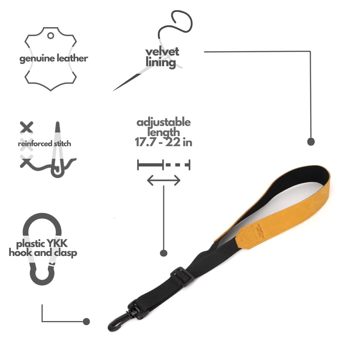 Correa de cuero MG Leather Work para saxofón -Amarrillo