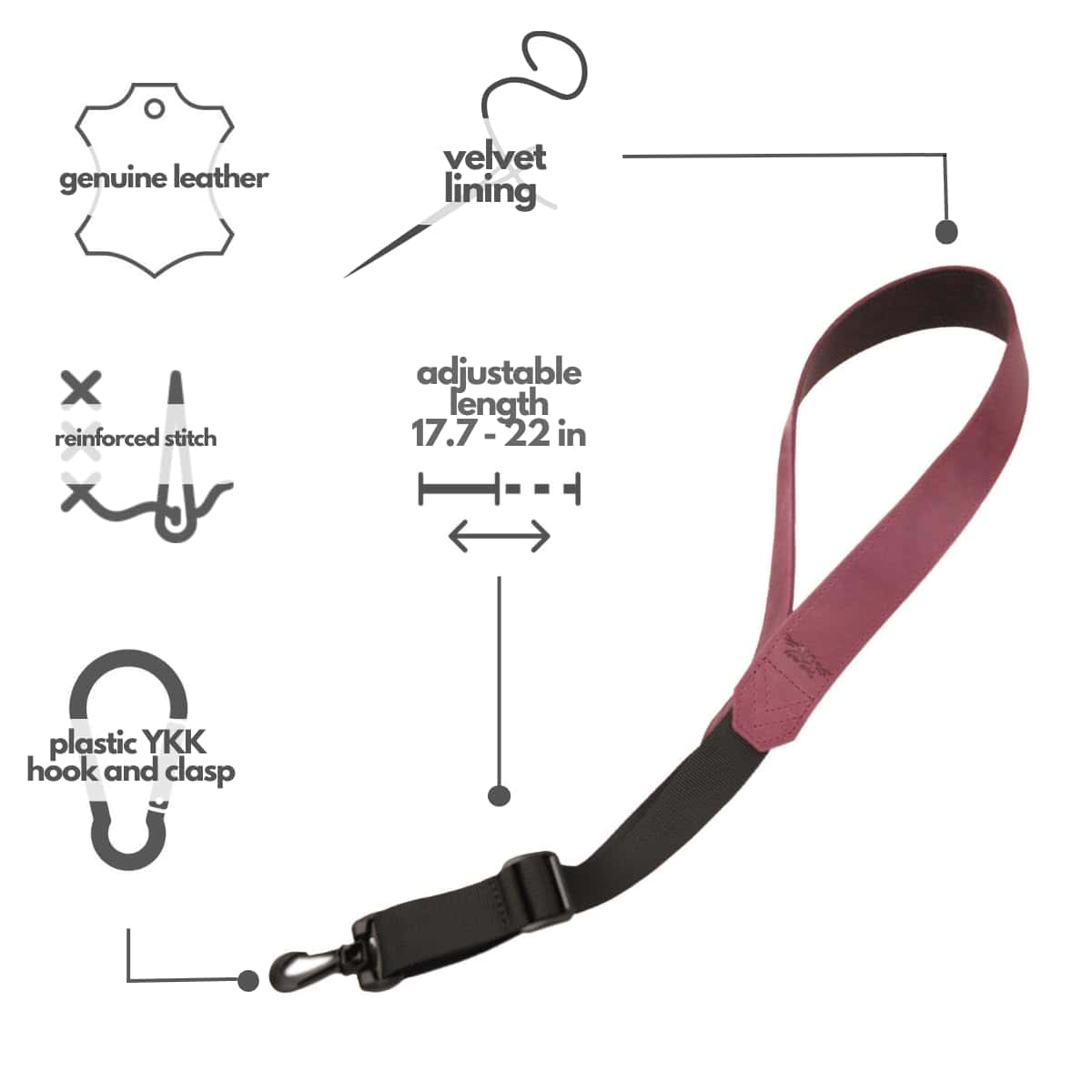 Correa de cuero MG Leather Work para saxofón, ideal para saxofonistas que buscan comodidad y estilo. Esta correa está hecha de cuero genuino de alta calidad, con un aspecto elegante y resistente. Con costuras reforzadas para mayor durabilidad y seguridad al usarla. Puedes elegir entre una amplia gama de colores para personalizar tu estilo. La correa es fácilmente ajustable, lo que te permite cambiar la longitud según tus necesidades, desde 17,71 hasta 22 pulgadas. El broche de plástico y el gancho de alta calidad garantizan un ajuste seguro y firme para sostener tu instrumento de forma segura. Compatible con todos los tipos de saxofones, incluyendo tenor, alto, soprano y barítono.
