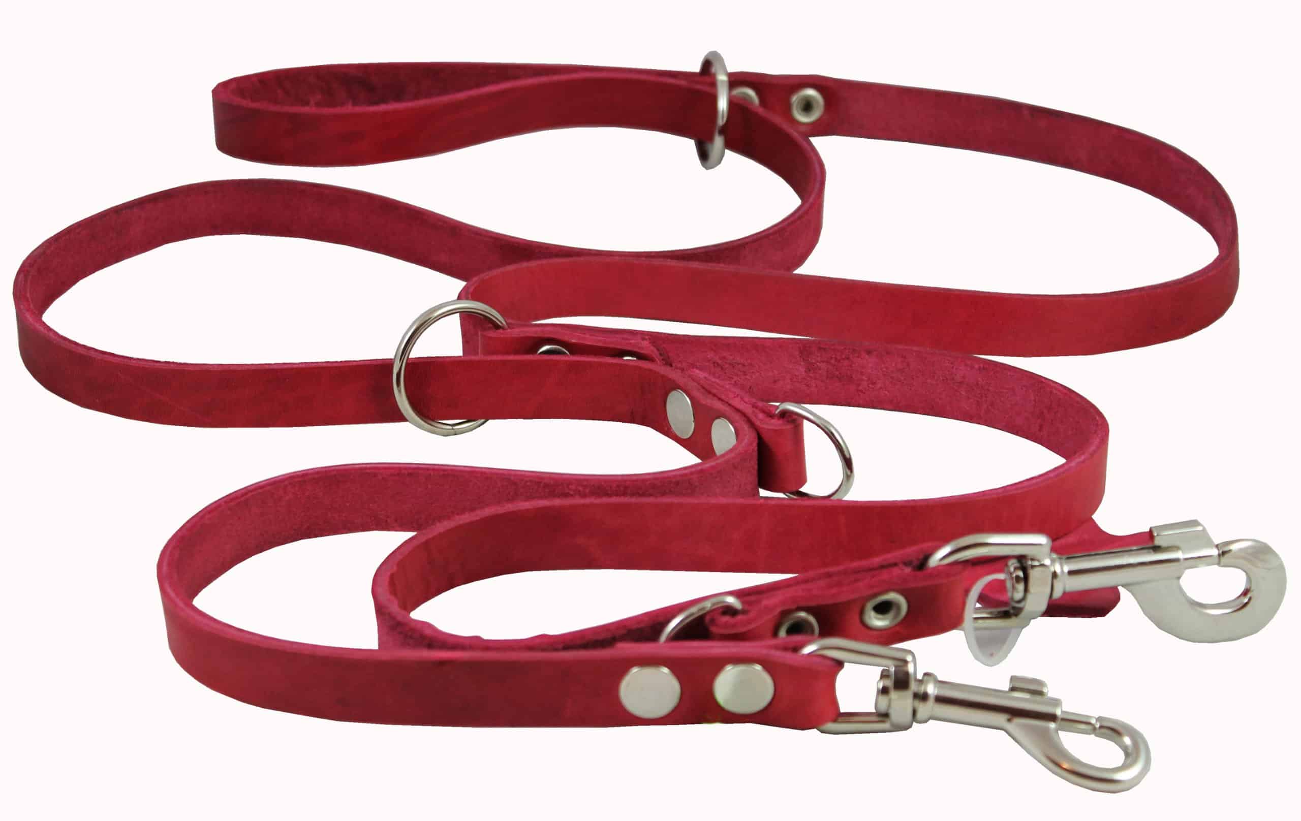 Las correas europeas de seis vías han sido populares entre adiestradores de perros, manejadores profesionales, entrenadores de perros K9 policiales de todo el mundo durante años. ¡Esta clásica correa de cuero ajustable para perros está diseñada para hacer que pasear a tu perro sea fácil! Perfecta para pasear con cualquier perro, puedes ajustar fácilmente la longitud de esta correa para asegurarte de que tú y tu mascota estén siempre cómodos. ¡Seis funciones en una correa versátil! Este tamaño es el más adecuado para razas grandes y extra grandes.
