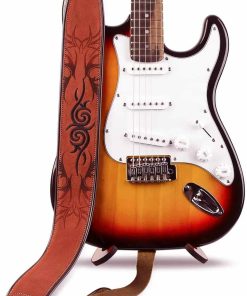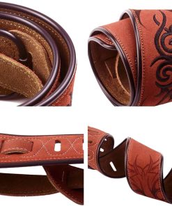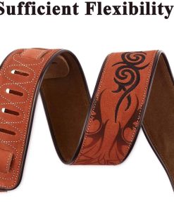 2. SE ADAPTA A LA MAYORÍA: Ancho de 2,8″, y la longitud ajustable es de 36.6″ a 51″(93cm-130cm). La correa de guitarra de cuero marrón tribal proporciona gran comodidad en tus hombros.