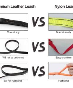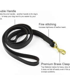 CARACTERÍSTICAS: 1. Correa de plomo de cuero genuino para perros, ofrece una larga durabilidad. 2. Aleación de cobre puro, hardware resistente a la oxidación y corrosión, resistente. 3. El diseño es un estilo simple y agradable, resistente pero también flexible. 4. No cortará tu piel al entrenar a tus perros, mucho mejor que las correas de nylon. 5. Apto para: galgo afgano / grandes caniches / setter irlandés / terrier de Boston / gran danés / boxeador / husky / Staffordshire / bulldogs / labrador / pastor alemán y otros perros del mismo tamaño. 6. A todos los perros les encanta salir a pasear, así que necesitas una correa de «salida». 7. Diferentes tamaños disponibles, dan a tu perro la flexibilidad suficiente pero también te dan control. 8. Aroma a piel, suave, resistente, gruesa, resistente y también elegante.