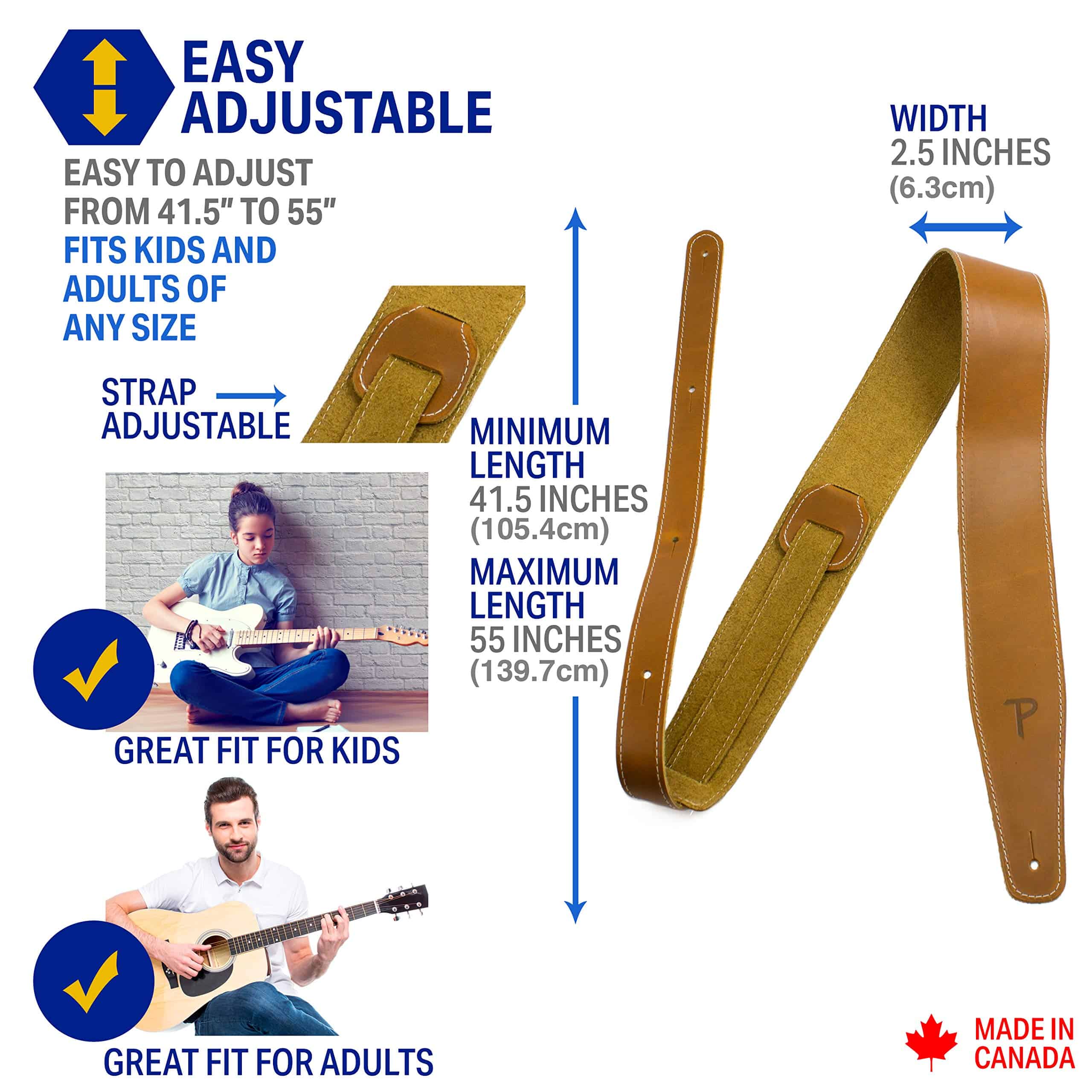 Correa de guitarra ajustable de la serie Baseball Leather