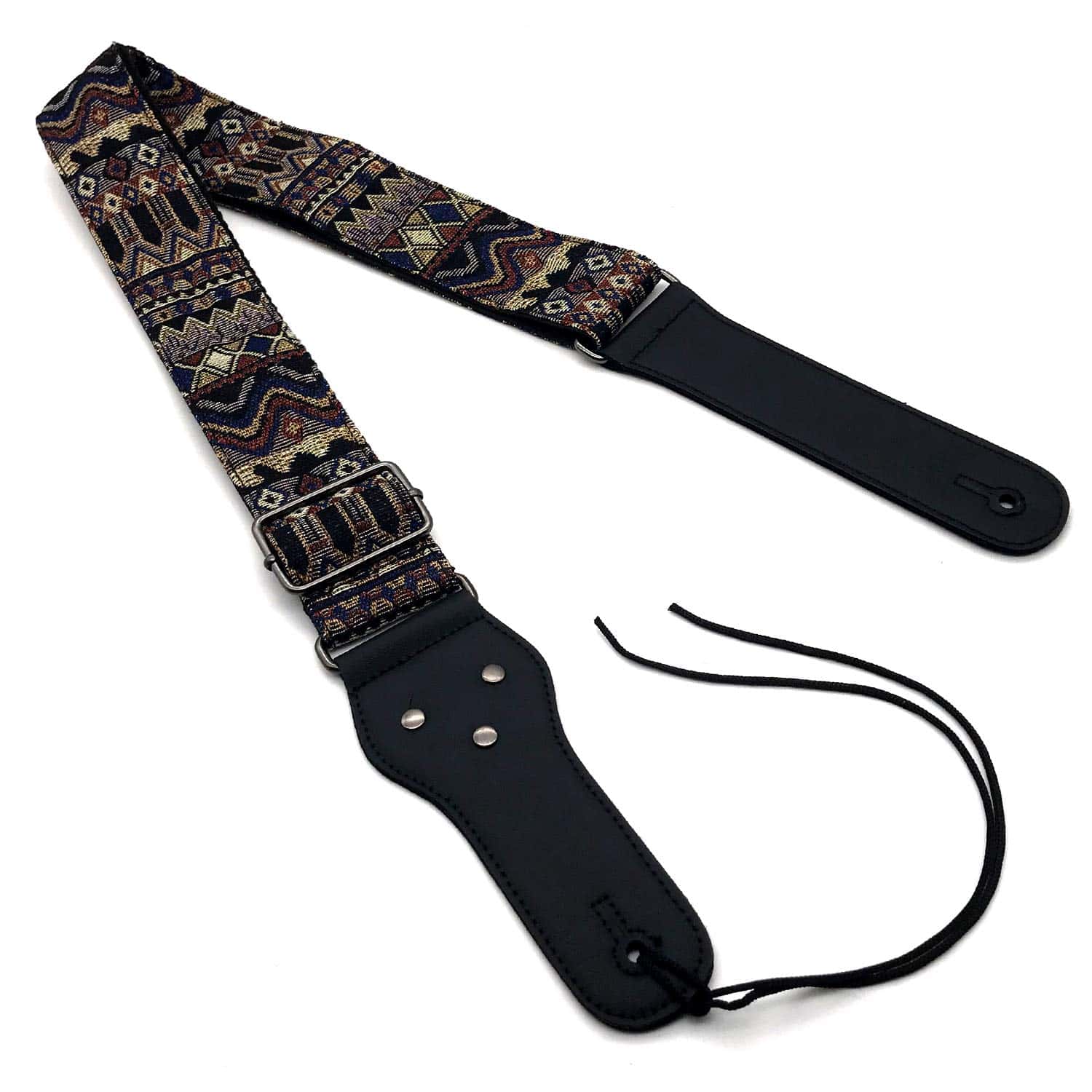 Correa de Guitarra Ajustable Poromoro para Guitarra Eléctrica/Bajo/Acústica/Clásica con un Par de trabillas de correa y un botón de correa de cuero