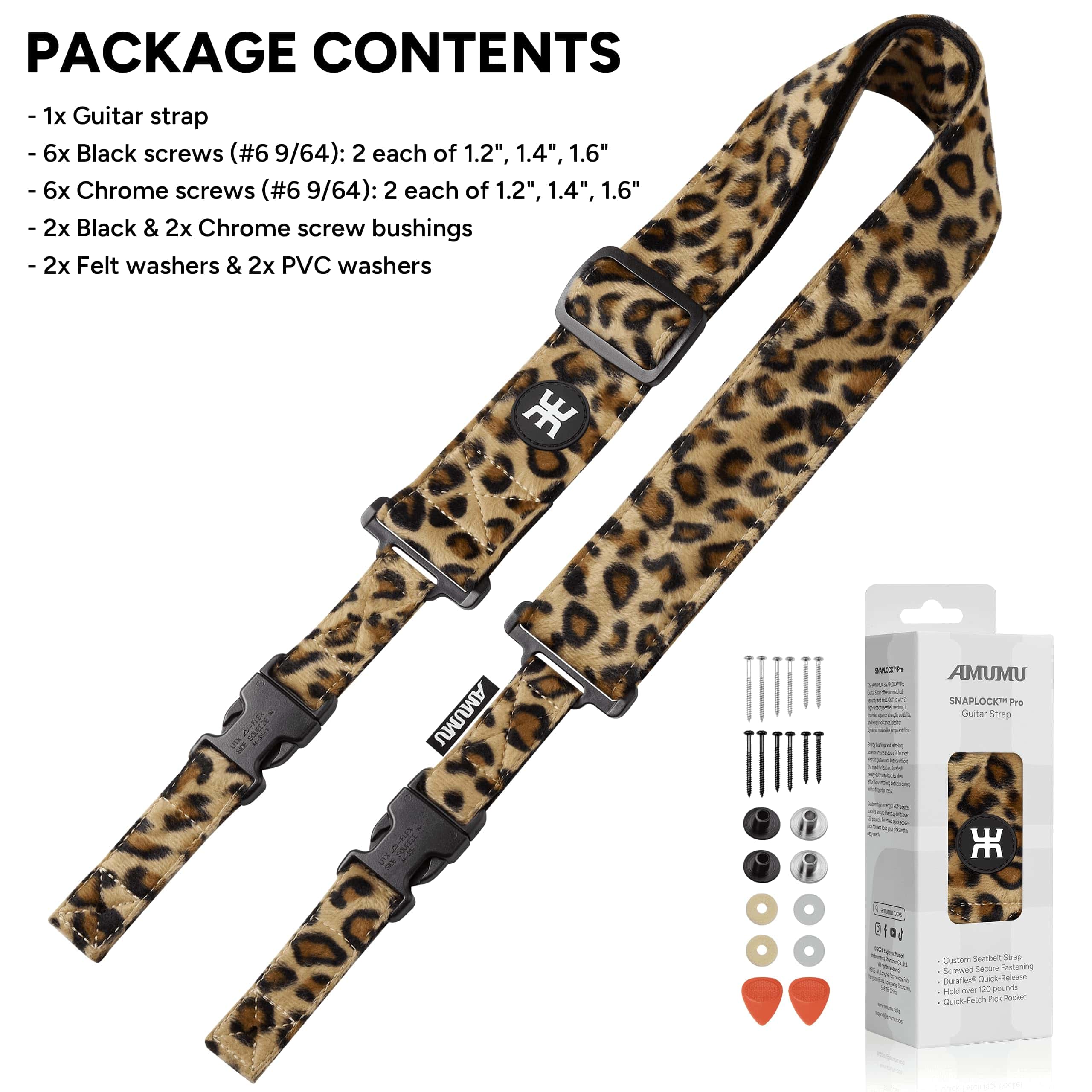 Correa de Guitarra Amumu SNAPLOCK Pro -Terciopelo Leopardo