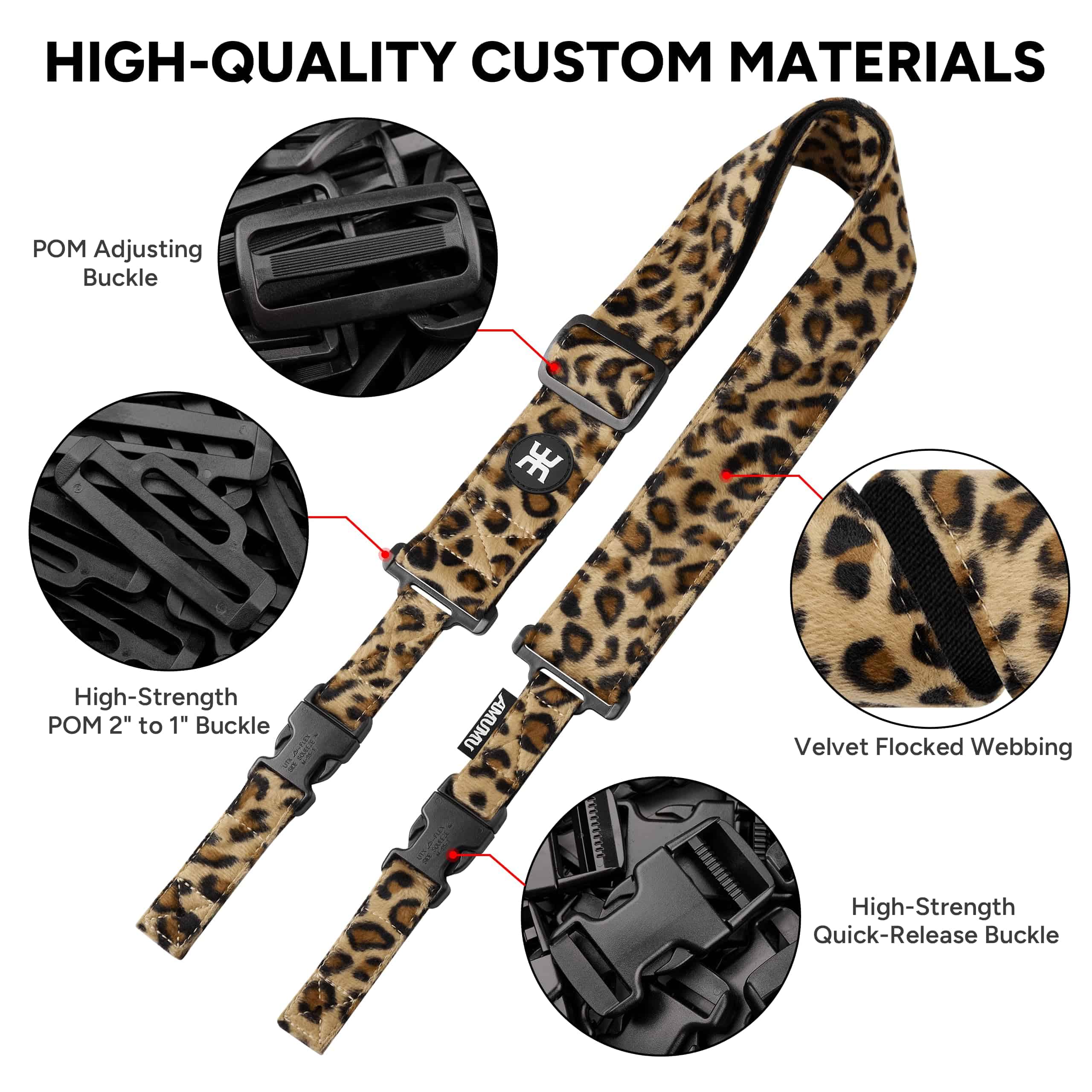 4. Ajustabilidad y capacidad de carga: Equipado con hebilla de ajuste POM estándar militar para ajustes fáciles de longitud (38″ a 57″) y una hebilla adaptadora personalizada de POM de alta resistencia de 2″ a 1″, asegurando que la correa pueda sostener más de 120 libras.