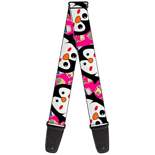 Correa de Guitarra Buckle-Down – Pingüinos con Cupcakes Fucsia/Multicolor – 2″ de Ancho – Longitud de 29-54″