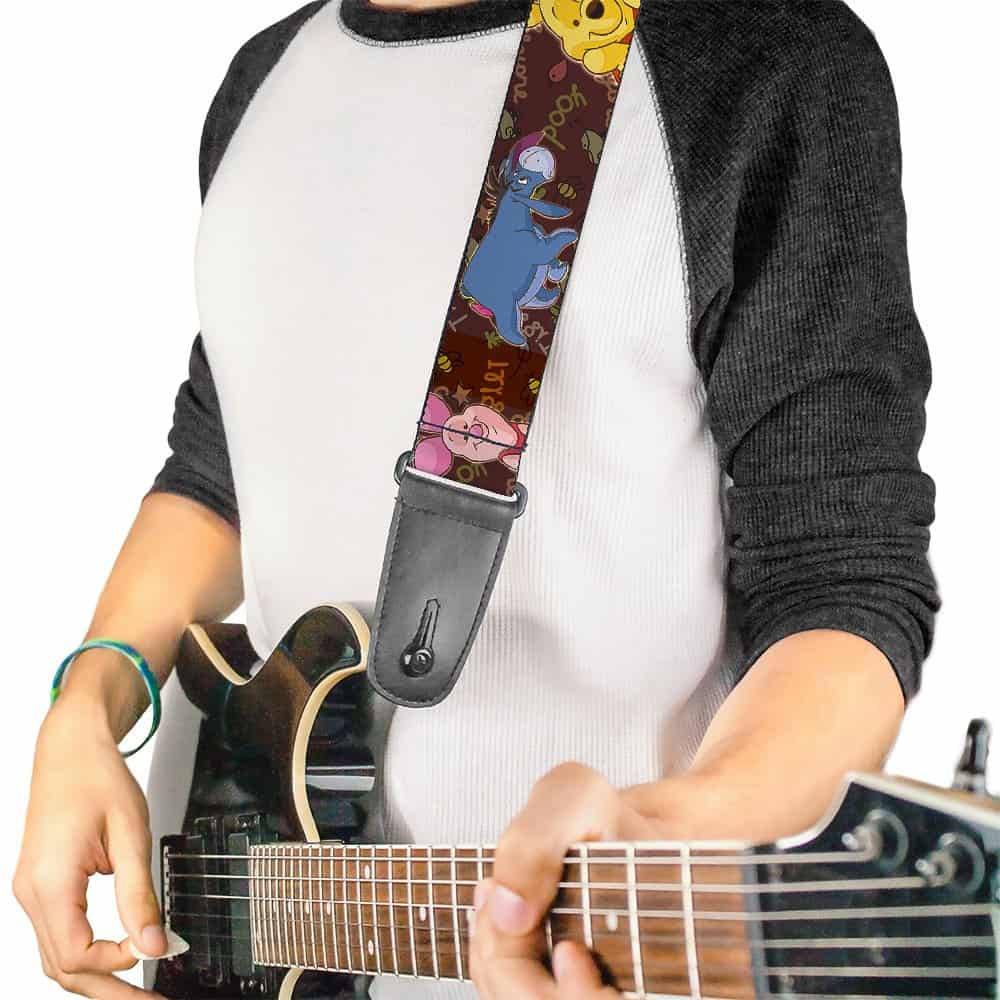 Correa de guitarra Buckle-Down – Poses de personajes de Winnie the Pooh – 2″ de ancho – Longitud de 29-54″