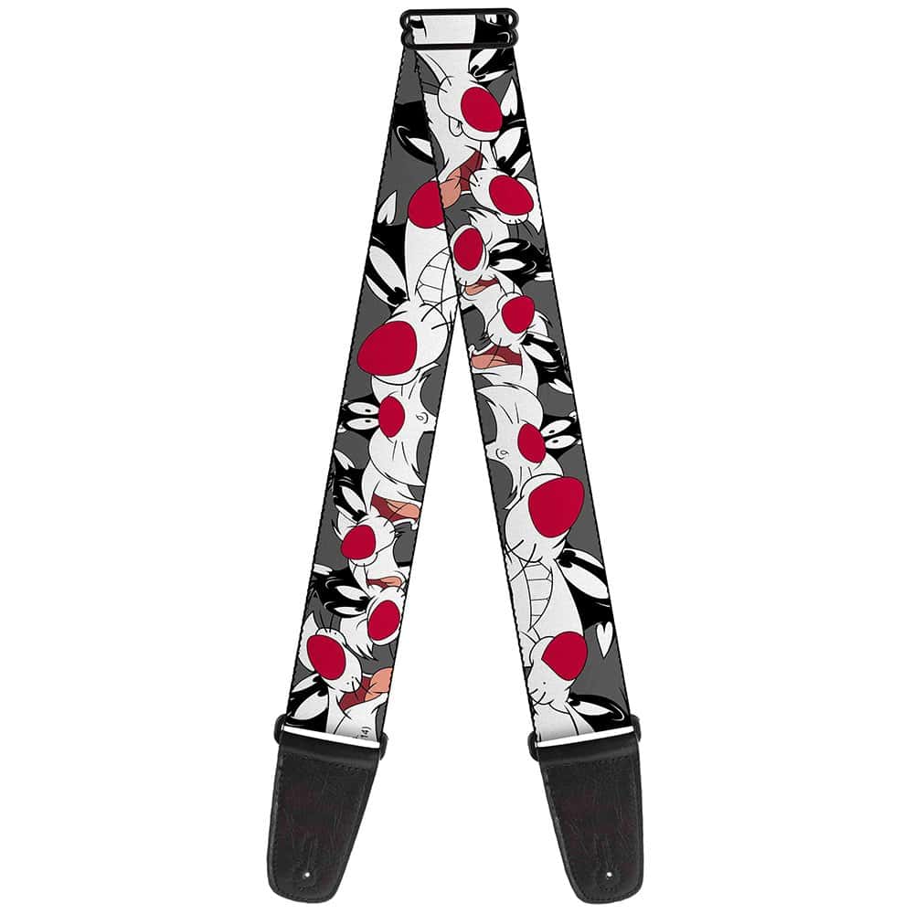 Correa de guitarra Buckle-Down – Silvestre el Gato Expresiones Gris – 2″ Ancho – Longitud de 29-54″