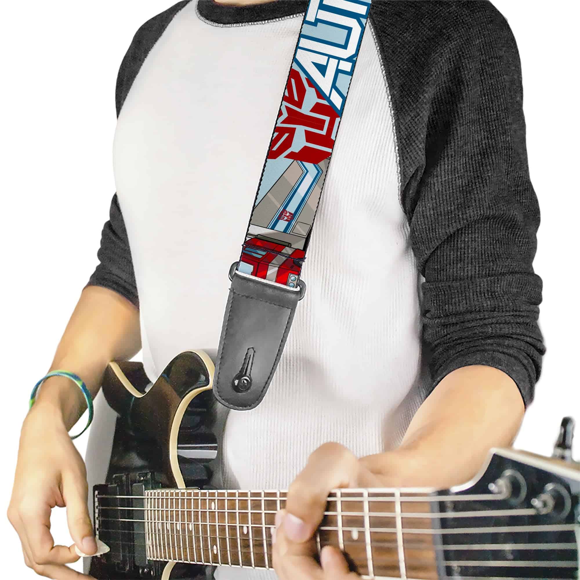 La correa de guitarra Buckle-Down Transformers presenta un diseño llamativo de Transformers Autobots Optimus Prime Semi Truck Collage en un vibrante color azul claro. Con un ancho de 2 pulgadas, esta correa es perfecta para los amantes de la música y los seguidores de la franquicia Transformers. Asegura tu guitarra con estilo y comodidad con esta resistente correa que combina calidad y diseño único.