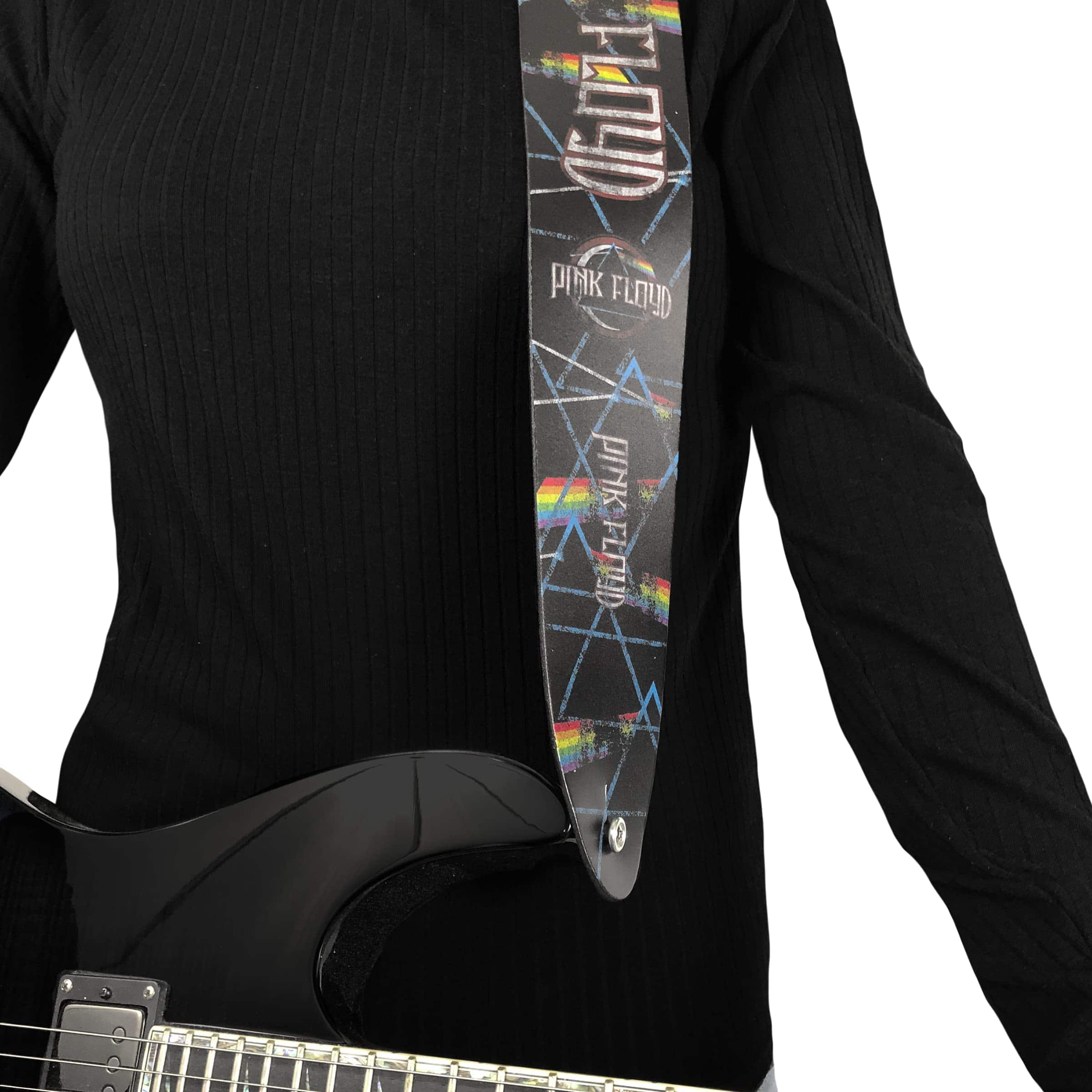Correa de guitarra de cuero con licencia -e Botones