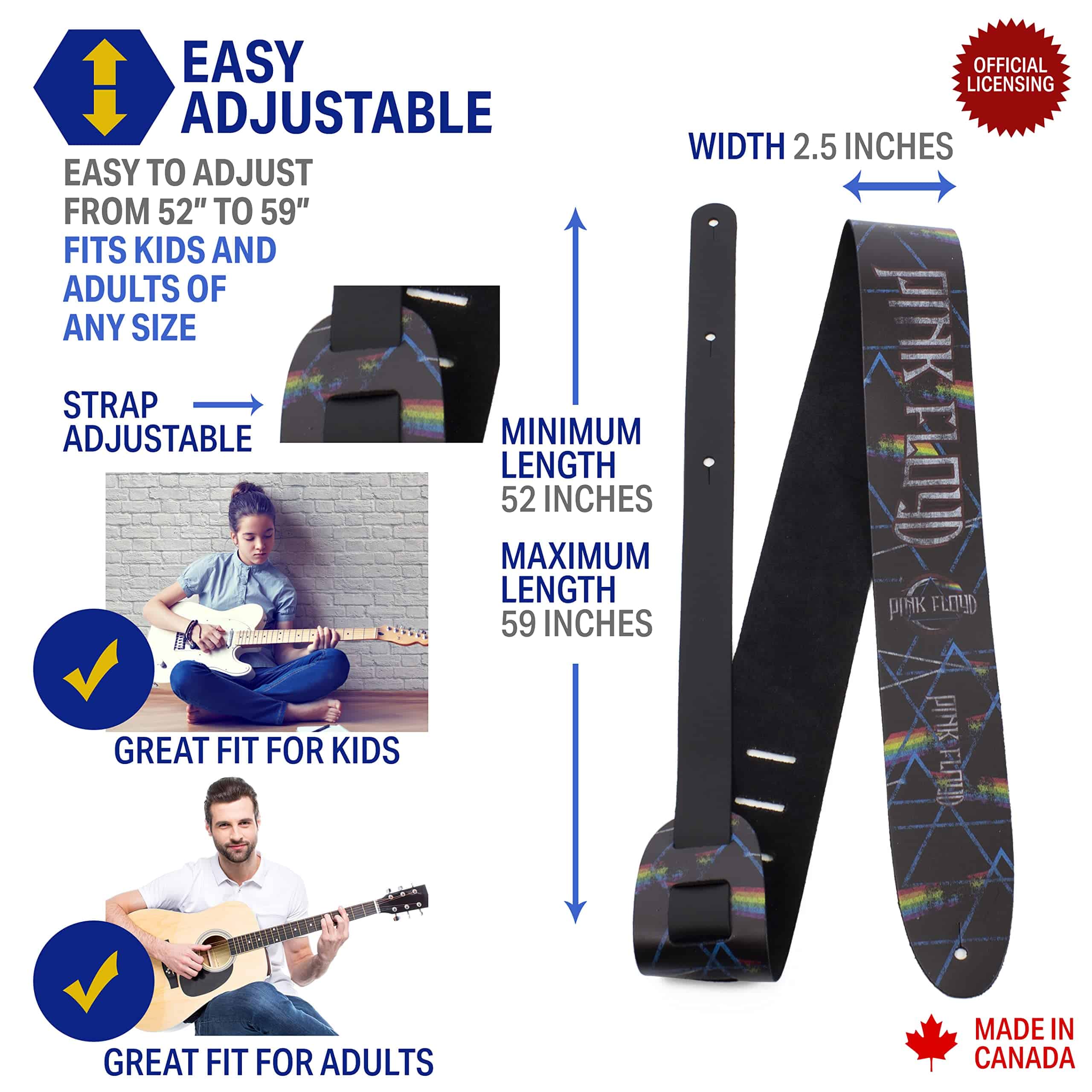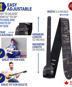 Correa de cuero resistente, duradera y muy cómoda de llevar. Diseñada para durar años. Distribución de peso uniforme para mayor comodidad. Longitud ajustable de 42.5 a 56 pulgadas. Compatible con una variedad de guitarras. Regalo ideal para amantes de la guitarra.