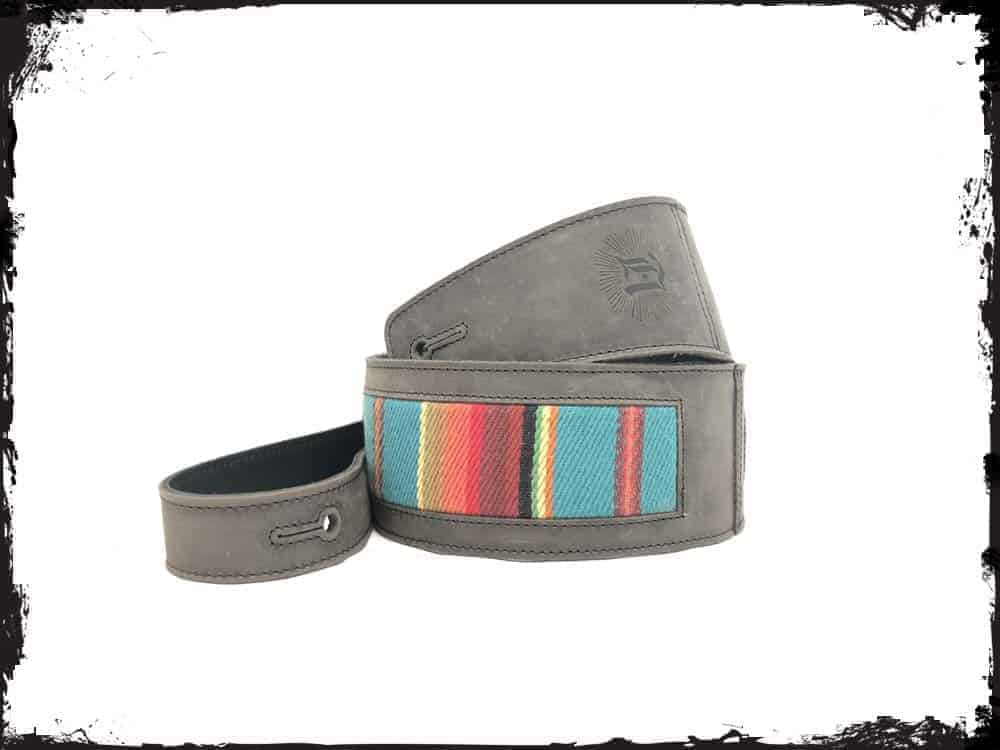 Correa de guitarra de cuero de grano completo inspirada en el suroeste de Anthology Gear. Ideal para guitarras eléctricas, acústicas y bajos. El Camino presenta un ancho de 3″ y una longitud ajustable de 39″ a 54″ (se puede extender un adicional de 9″ con nuestra Jumbo Tongue opcional). Hecho a mano con cueros de grano completo de la más alta calidad del mundo, esta correa se destaca por su resistencia y durabilidad. Los hilos utilizados son de grado industrial, los mismos utilizados para fabricar paracaídas y airbags, garantizando una confianza total en la resistencia de la correa. El cuero burnish y mejora con el uso, adquiriendo un aspecto vintage y retro con el tiempo. Disfrute de una experiencia de juego cómoda gracias al relleno premium entre las capas de cuero. La correa El Camino viene en un elegante color Acero Envejecido con Tela Turquesa, que le brinda un toque único y distintivo a su instrumento musical.