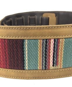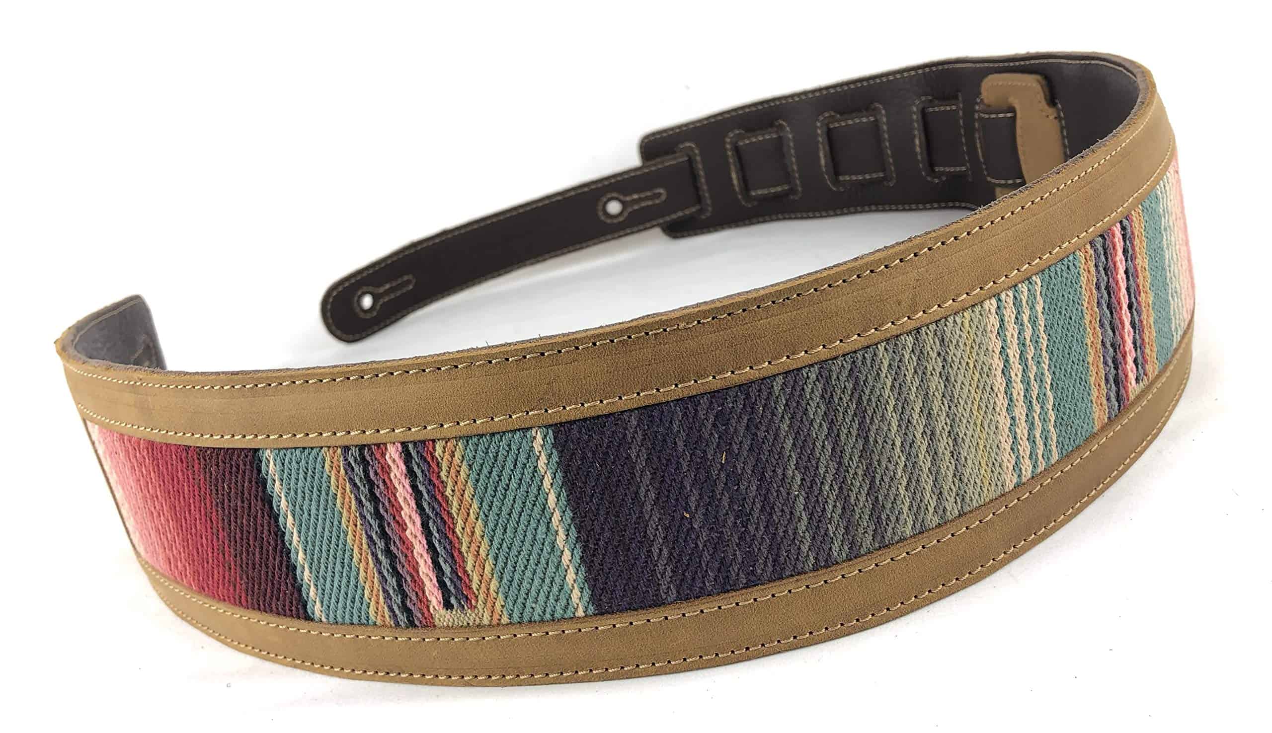 EL CAMINO Así es como es. Hay un hilo que sigues. Va entre las cosas que cambian. Pero no cambia. La gente se pregunta qué estás persiguiendo. Tienes que explicar sobre el hilo. Pero es difícil que otros lo vean. Mientras lo sostienes no puedes perderte. Ocurren tragedias; la gente resulta herida o muere; y sufres y envejeces. Nada de lo que hagas puede detener el despliegue del tiempo. Nunca dejas de sostener el hilo. – William Stafford Todas las correas de guitarra y bajo de Anthology están hechas a mano con los cueros de grano completo de la mejor calidad en el mundo. Nuestros cueros son elegidos por su capacidad para distribuir completamente el peso de la guitarra a lo largo de la correa, para una experiencia de juego más cómoda en esos largos conciertos. Nuestras correas no solo son geniales visualmente; también son súper cómodas. Entre una capa superior de cuero de grano completo resistente y la tela del suroeste, y una capa inferior de cuero de grano completo ultra suave, utilizamos un relleno de alta densidad y premium, para maximizar la comodidad sin sacrificar la fuerza. Damos al guitarrista lo mejor de ambos mundos, una correa de guitarra acolchada y elegante. ¡Cómoda y duradera con estilo! Mejor aún, solo utilizamos los hilos industriales más fuertes, los mismos hilos utilizados para hacer paracaídas y airbags. Esa es la fuerza en la que puedes confiar. Para rematar, nuestra piel se quema y embellece con el uso. Todas nuestras correas tienen sus marcas, raspones y cicatrices naturales, lo que significa que tienen mucha personalidad cruda y robusta. Ya sea utilizado con una guitarra eléctrica, acústica o de bajo, esta correa se verá genial, se sentirá genial y ojalá inspire al usuario a crear su propia antología de trabajo. Disponible tanto en un ancho de correa de guitarra de 2″ como de 3″. Una «Lengüeta Jumbo» opcional (se vende por separado) también está disponible para aquellos que requieren una correa de guitarra larga.
