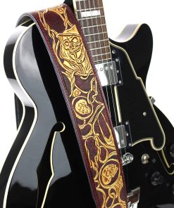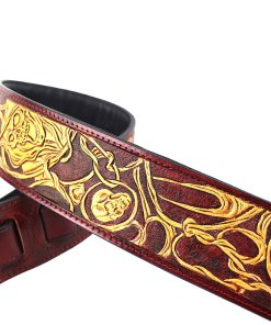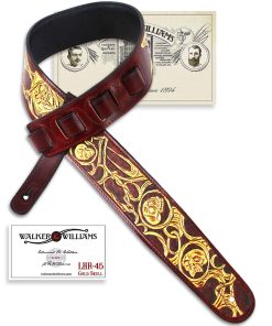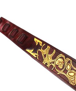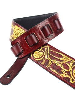 Hemos lanzado la nueva serie de artistas LHR. Combinando cuero de talla superior con maravillosa artesanía en cuero, hemos creado diseños modernos, vintage y completamente nuevos. Estas correas tienen bordes negros brillantes con una pieza de cuero tallado de alta calidad. Hemos agregado un respaldo de cuero acolchado premium para una comodidad duradera. Con colores que van desde el negro brillante, marrones sutiles hasta azules vibrantes, estas correas seguramente combinarán bien con una gran variedad de acabados de guitarra y destacarán en el escenario o fuera de él. Correa LHR-45 de cuero rojo sangre premium con incrustaciones de calaveras doradas brillantes Respaldo con acolchado premium de cuero suave Cuero de talla superior con extremos rojos semibrillantes Cuero tallado de longitud completa Calaveras doradas brillantes en diseño de alambre de espino Fondo rojo sangre Costuras rojas Bordes negros Ancho de 50″ Ajustable de 39″ a 56″.