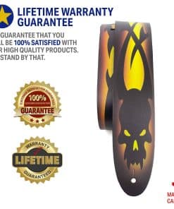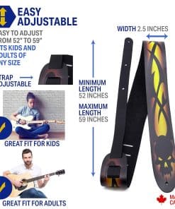 1. DISEÑOS Y CARACTERÍSTICAS: Hecho de cuero de alta calidad, nuestra correa es duradera y ajustable, se adapta a las necesidades de cualquier músico con dimensiones de 2″ pulgadas de ancho y longitud ajustable de 42.5″ a 56″ pulgadas de largo. Ya seas un experto o un músico principiante, nuestra correa es un accesorio imprescindible para cualquier músico. Elige entre una variedad de diseños y muestra tu personalidad única. Nuestra correa es compatible con todos los sistemas de bloqueo de botones, y el sistema de bloqueo acolchado garantiza que tu instrumento se mantenga seguro.