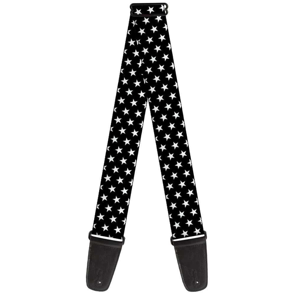 Correa de Guitarra Mini Estrellas3 Negra Blanca 2 Pulgadas