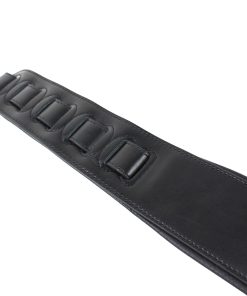1. Cuero de primera calidad negro con relieve completo en la nariz. 2. Espalda de cuero acolchado súper cómodo. 3. Nariz larga cónica. 4. 3″ de ancho. 5. Ajustable de 40″ a 55″
