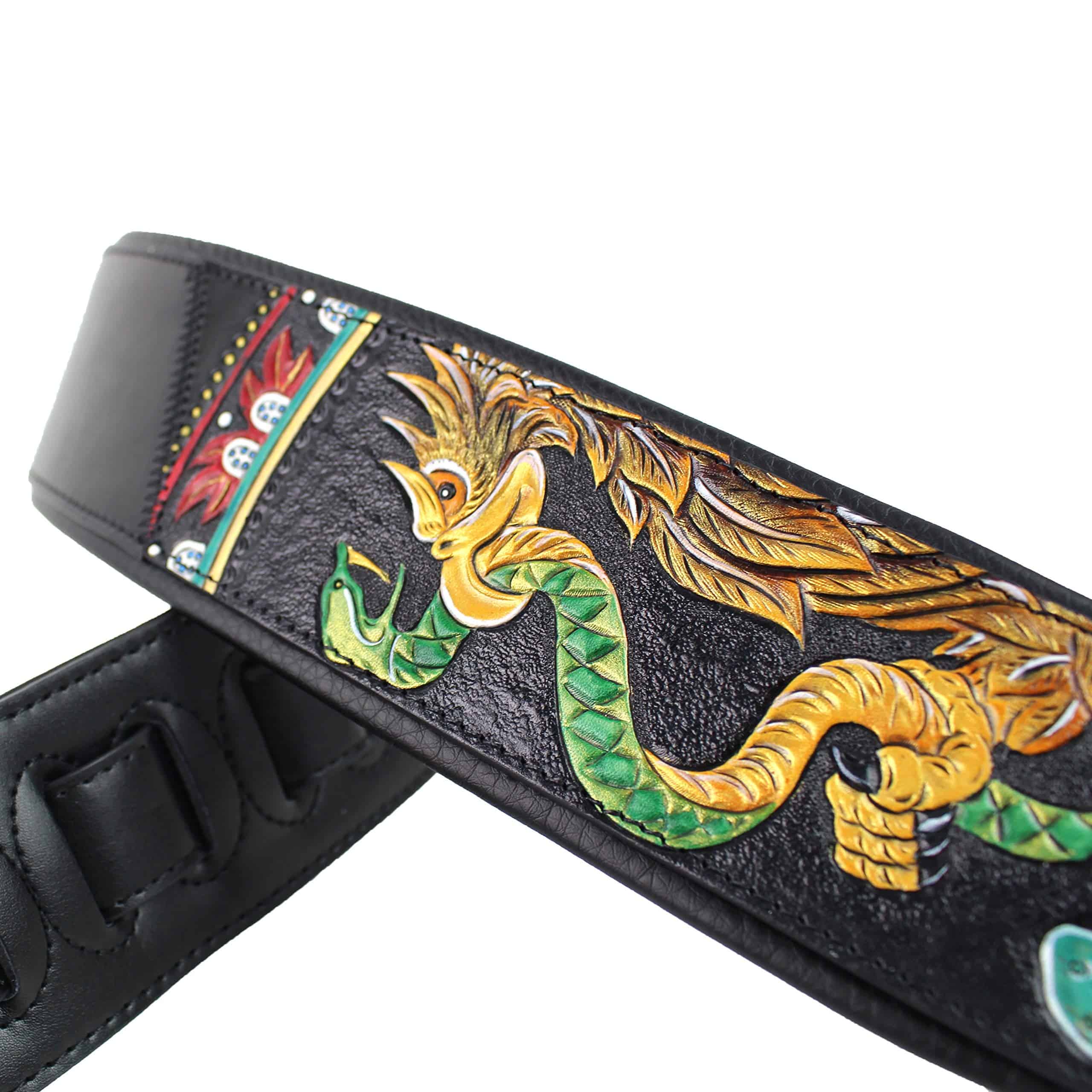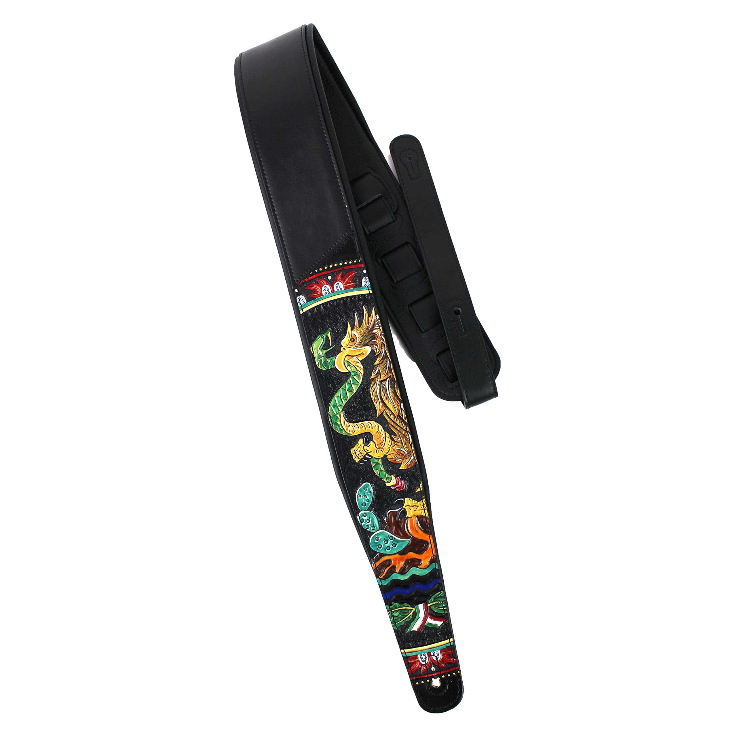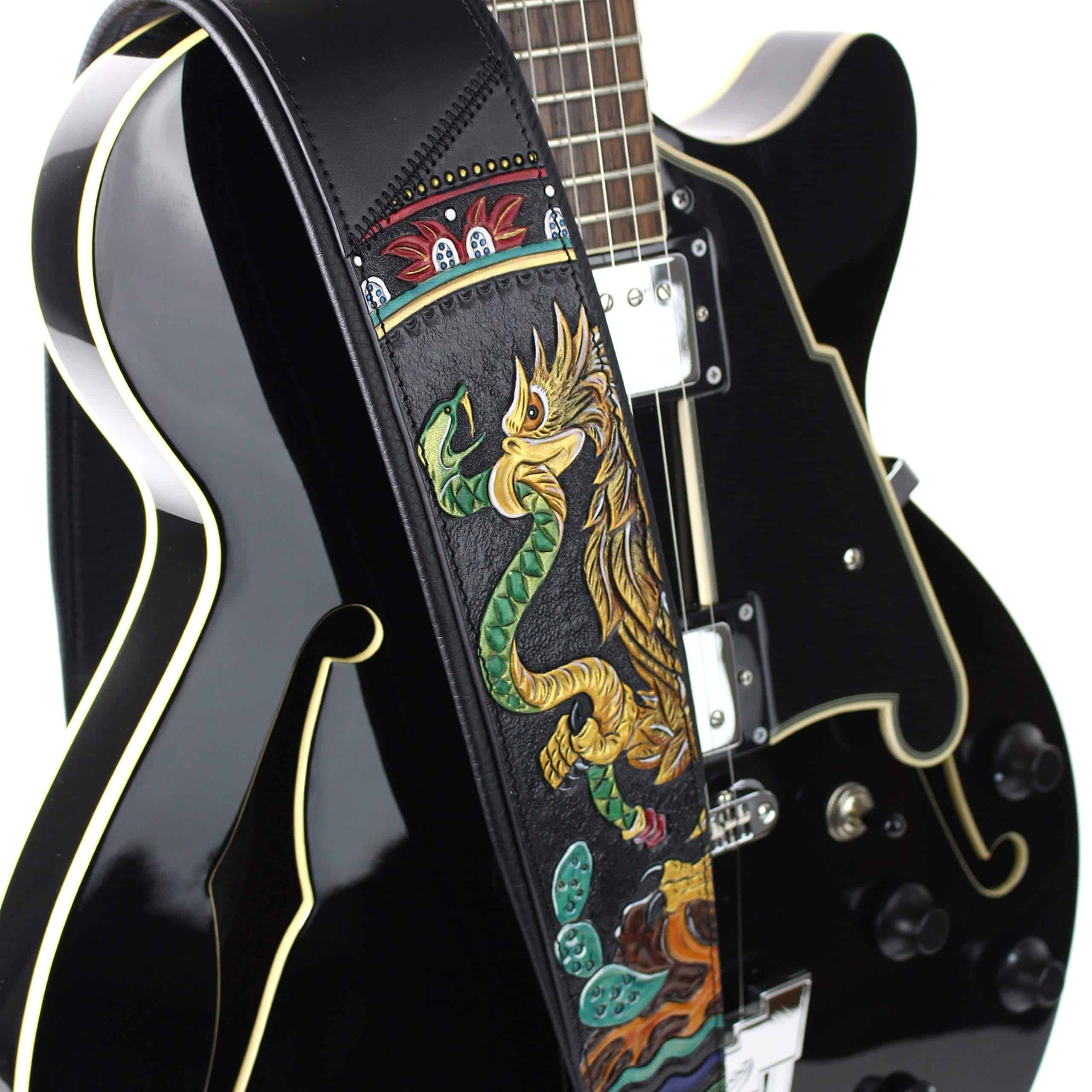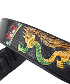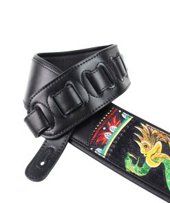 Nueva en nuestra línea World Heritage, nuestra serie Walker And Williams KB-53-BLK está hecha a mano con diseños clásicos y nuevos inspirados en países alrededor del planeta. Cada diseño incluye representaciones de arte y símbolos tradicionales de diferentes culturas. Hemos confeccionado cada correa con artesanía en cuero de alta calidad y pinturas detalladas. Creemos que todos deberían estar orgullosos de su herencia y queremos que puedan mostrarla en sus queridas guitarras. Estamos muy contentos con los diseños y el trabajo que hemos realizado en estas correas. Estamos seguros de que también estarás feliz con estos nuevos modelos que tenemos para ti. Correa negra KB-53-BLK con diseño de águila y serpiente azteca en cuero grabado negro, cómoda espalda de cuero acolchado, diseño vibrante hecho a mano, fondo negro semibrillante, costuras a juego, 3″ de ancho, nariz cónica larga, ajustable de 40″ a 55″