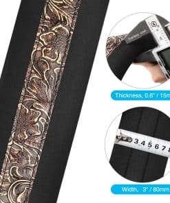LEKATO correa de guitarra de 3″ de ancho de espuma viscoelástica con extremos de cuero cosido de alta calidad funciona bien en guitarras pesadas, guitarras eléctricas, bajos, etc. Se trata de la correa de tamaño regular que ofrece un amplio rango de ajuste de 45 a 55 pulgadas. Es duradera y alivia la presión, se ve increíble en cualquier estilo de guitarra que toques.