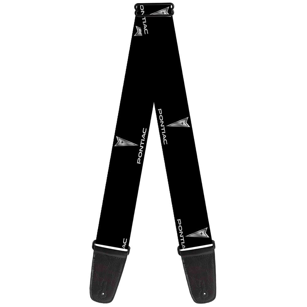 Correa de guitarra Pontiac Negro Plata Logo Repeat 2