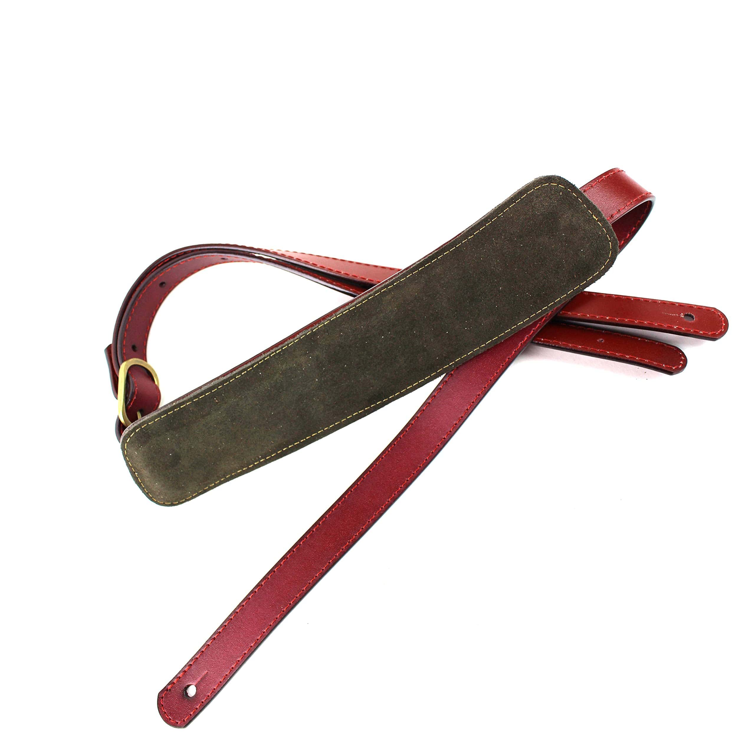 Nos enorgullece decir que hemos terminado una variedad de nuevos colores, acabados y opciones de cuero para nuestras apreciadas correas vintage con almohadilla de hombro. Algunas, manteniendo nuestra almohadilla de doble capa estándar de cuero guiante, y otras con un nuevo respaldo de almohadilla de gamuza marrón robusta. Todas son 100% hechas a mano, correas de cuero premium cosidas a mano. Correa tipo Slash de estilo vintage en cuero premium color bourbon rojo extra larga en cuero de grano superior y almohadilla de hombro de gamuza cosida a mano. Cómoda pieza de hombro acolchada de gamuza. Doble refuerzo en los extremos. Costuras rojas. Hebilla de bronce vintage. Extra larga ajustable de 47″-61″. 1″ de ancho en la pieza Slash. 2.5″ de ancho en la almohadilla.