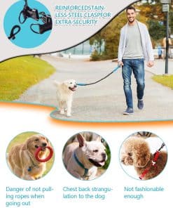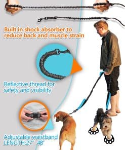Te presentamos nuestra correa de perro manos libres con clip de cinturón deslizante fácil, perfecta para perros medianos a grandes que tienden a tirar. Nuestra correa está diseñada pensando en tu comodidad, permitiéndote caminar, correr o hacer senderismo con tu perro sin pisar sus patas. La correa elástica se estira hasta 5 pies y absorbe los golpes, facilitando que puedas controlar a tu cachorro desde tu núcleo. Nuestra correa cuenta con un diseño de doble mango para un fácil control, con una colocación de mango en la cadera para guiar a tu perro de nuevo al camino correcto y un collar para control directo. La correa está hecha con materiales de alta calidad y cuenta con costuras reflectantes para una máxima visibilidad durante condiciones de poca luz. El cinturón ajustable viene en dos tamaños, adaptándose a tamaños de cintura que van desde 25 «a 58», y cuenta con una hebilla de liberación rápida para ponerlo y quitarlo fácilmente. Esta correa estilo deportivo no solo es duradera sino también cómoda, con un mango doble acolchado de neopreno suave incorporado que ayuda a prevenir las quemaduras de cuerda. La correa se estira de 4 a 6 pies, permitiéndote a ti y a tu perro caminar o correr juntos sin enredarse. Con nuestra correa, puedes disfrutar de paseos y carreras manos libres con tu amigo peludo manteniéndolo seguro y cómodo.