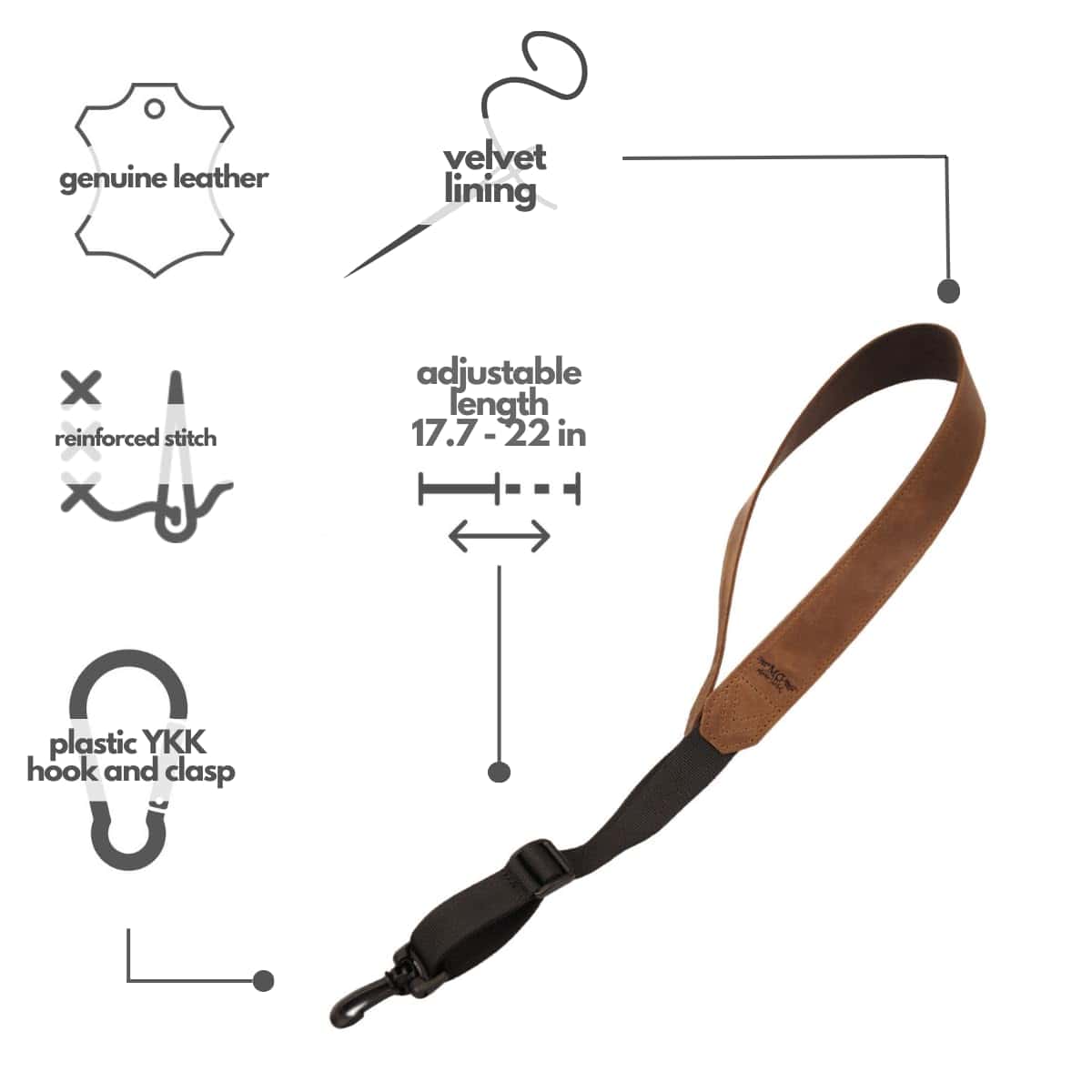 Correa de Saxofón de Trabajo de Cuero MG para saxofón alto, tenor, soprano, barítono Correa de Cuero para Sax, correa para Saxofón hecha de Cuero Genuino Crazy Horse (Marrón). Hecho de cuero genuino Crazy Horse, complementado con costuras reforzadas que lucen atractivas y elegantes. Una amplia gama de colores elige la opción que más te guste. Fácilmente ajustable puedes cambiar la longitud de 17.71 a 22 pulgadas (de 45 a 56 cm). Broche y gancho de plástico de alta calidad para ajustar fácilmente la longitud de la correa del cuello del saxofón y sujetar tu instrumento de forma segura. Se adapta a todos los tipos de saxofones tenor, alto, soprano, barítono.
