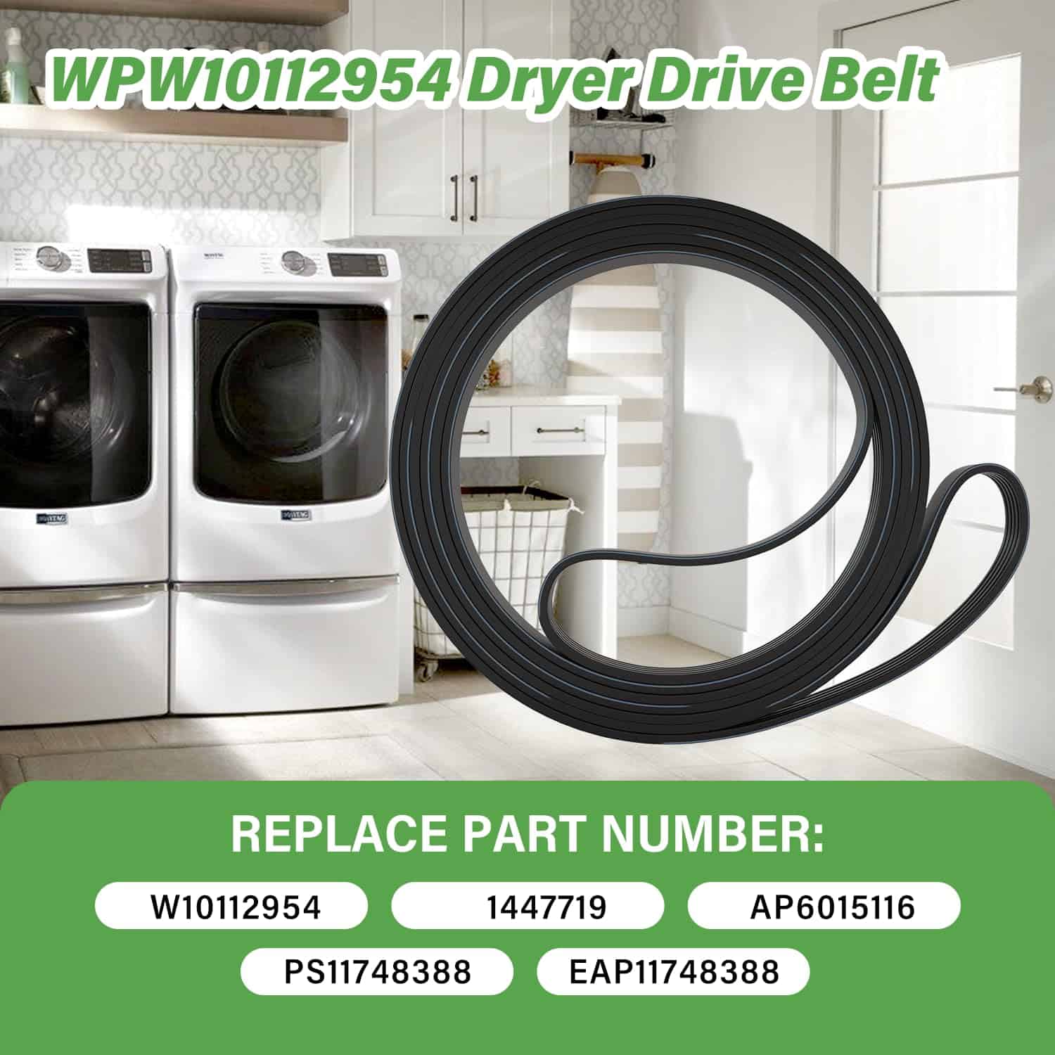 La correa de transmisión del tambor de la secadora WPW10112954 es compatible con Maytag, Whirlpool. Esta correa de transmisión adopta materiales de alta calidad y es cuidadosamente probada por el fabricante. Puede resolver eficazmente los siguientes síntomas: la secadora gira mucho, muy lentamente o deja de girar, hace ruidos o incluso huele a quemado. Contáctenos para más preguntas y cualquier otra necesidad de piezas de electrodomésticos. Nos esforzaremos al máximo para resolver el problema, la satisfacción del cliente es nuestra búsqueda incansable.