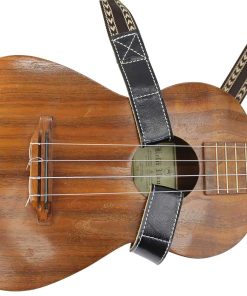 Correa de ukelele de doble gancho con almohadilla de hombro de cuero negro de grano superior y ante. No se necesita botón de correa adicional. El único ukelele sobre el hombro que no requiere modificaciones, un botón de correa adicional o velcro. Estilo de doble gancho único mantiene el ukelele seguro y estable con las manos libres. Ajustable para adaptarse a la mayoría de los ukeleles y muchos mandolinas. Los ganchos son ajustables para adaptarse a la mayoría, pero no a todos, los tamaños de los agujeros y patrones de refuerzo.