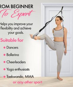 1. Aumenta tu Flexibilidad: Logra una mayor flexibilidad con esta correa de yoga de 10 lazos; diseñada para estiramientos controlados que apuntan a grupos musculares clave y mejora tu rango de movimiento a tu propio ritmo. 2. Anclaje de Puerta Conveniente: Incluye un anclaje de puerta seguro y fácil de instalar que convierte cualquier puerta estándar en una estación de estiramiento; perfecto para lograr estiramientos más profundos sin asistencia, asegura una base estable para ejercicios de flexibilidad. 3. Personalizable para Cada Nivel de Fitness: Ya sea que seas nuevo en el yoga o un practicante experimentado, los lazos ajustables en esta correa de estiramiento hacen que sea fácil adaptarse a tu nivel, garantizando un entrenamiento seguro y efectivo. 4. Diseño Seguro y Cómodo: Hecho con materiales de alta calidad y duraderos, esta correa de estiramiento con lazos garantiza comodidad durante el uso; el anclaje de puerta acolchado con espuma protege las puertas de daños, permitiéndote estirarte con tranquilidad. 5. Portátil y Fácil de Usar: Ligero y fácil de doblar, este accesorio de yoga es perfecto para usar en casa o de viaje; incorpóralo en tu rutina diaria para un mejor equilibrio, una postura mejorada y una mayor flexibilidad.